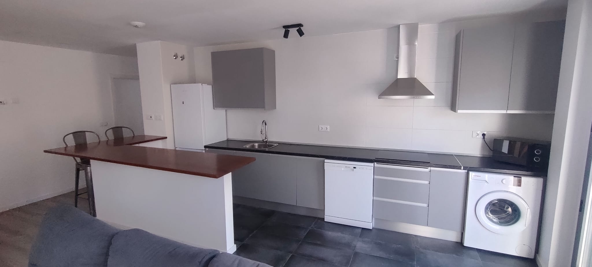 Apartamento de 70 metros útiles, amplio salón exterior con cocina americana, 2 dormitorios amplios con armarios empotrados y 1 baño con ducha.