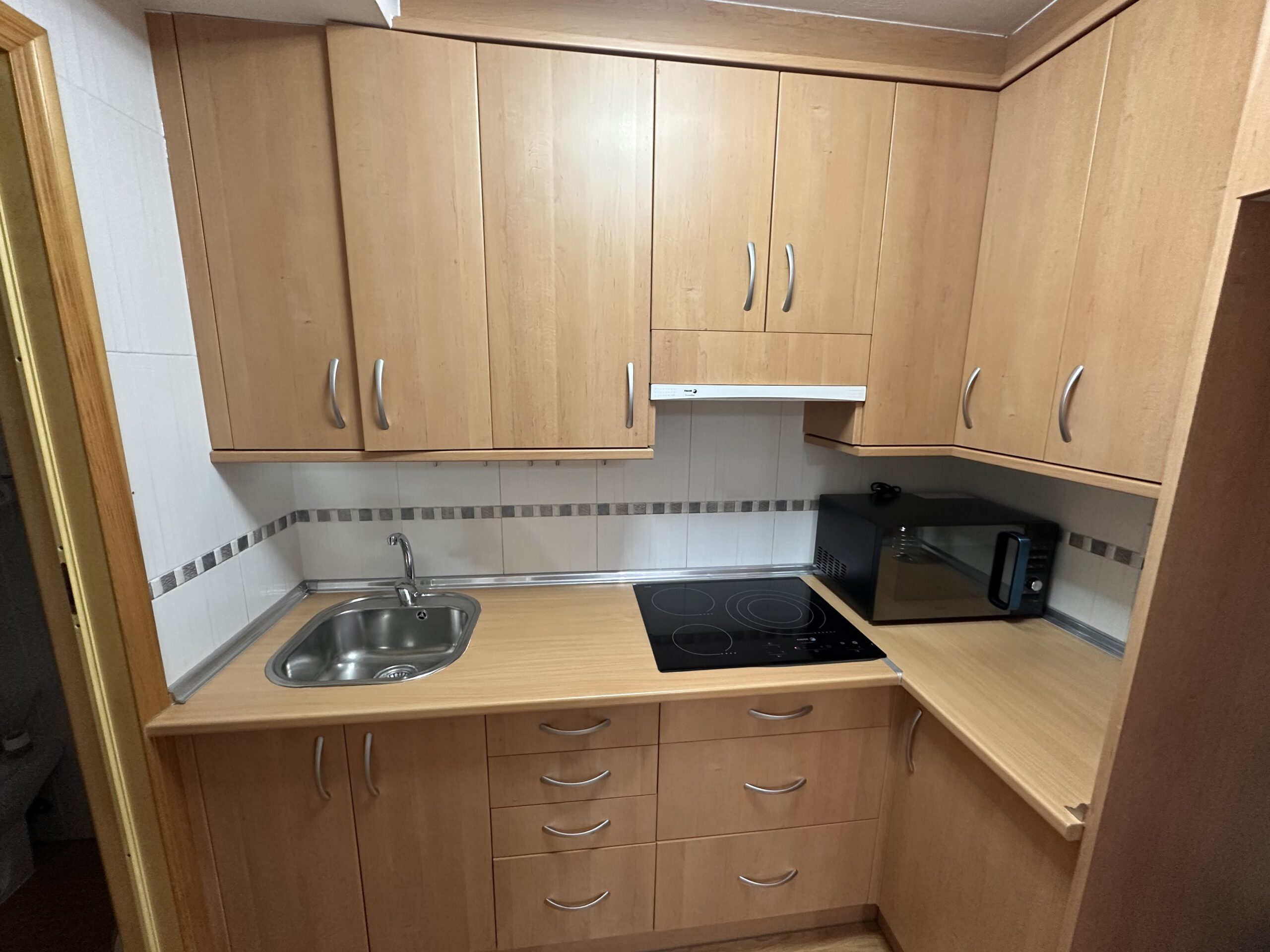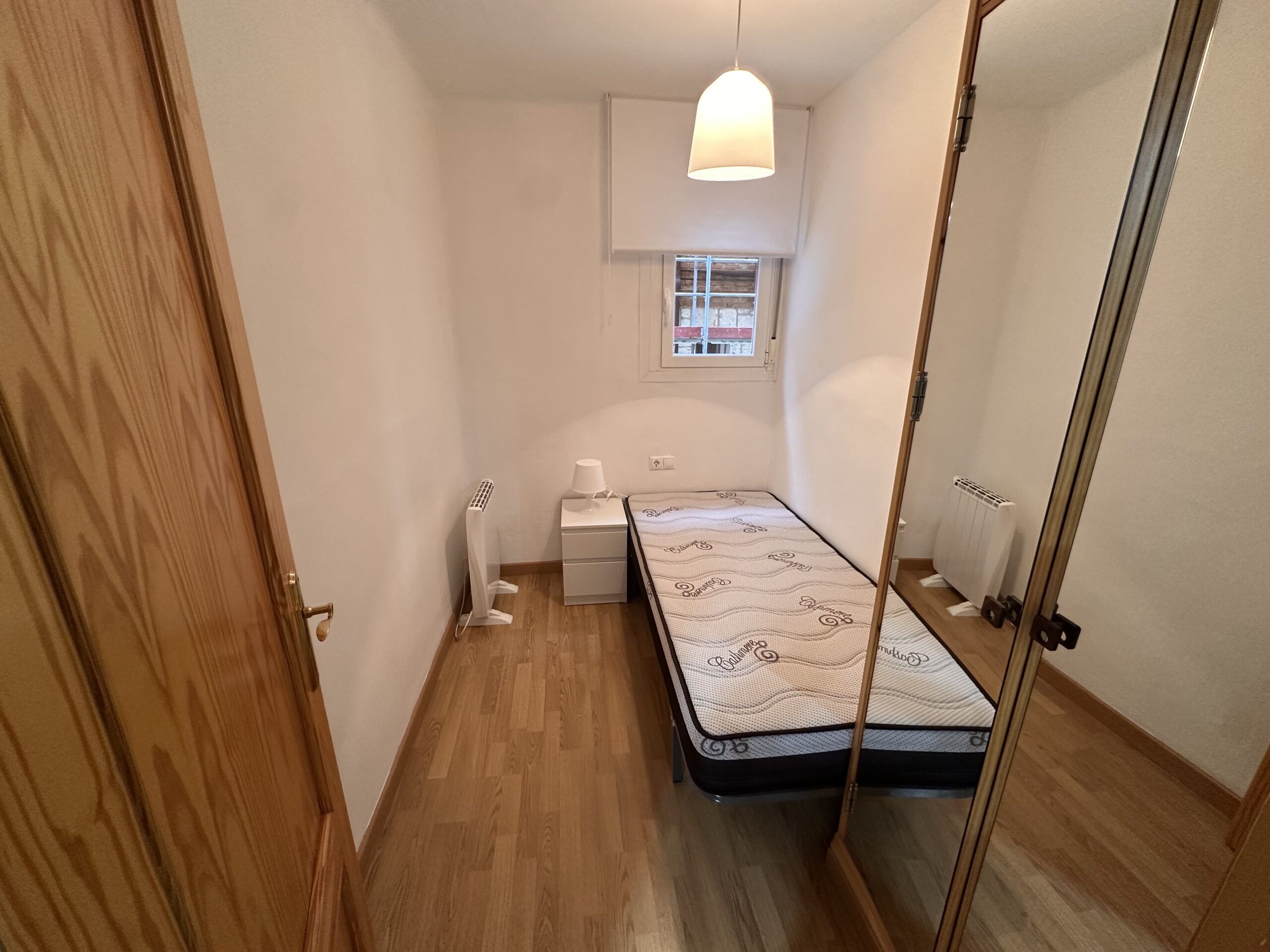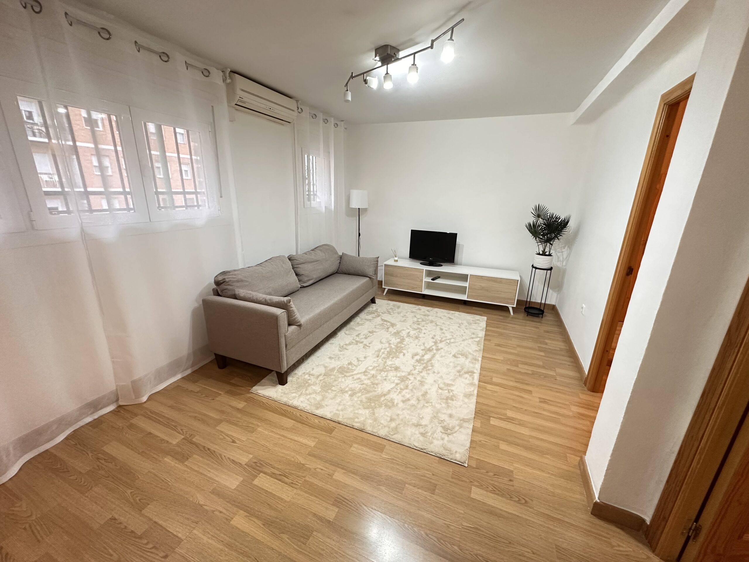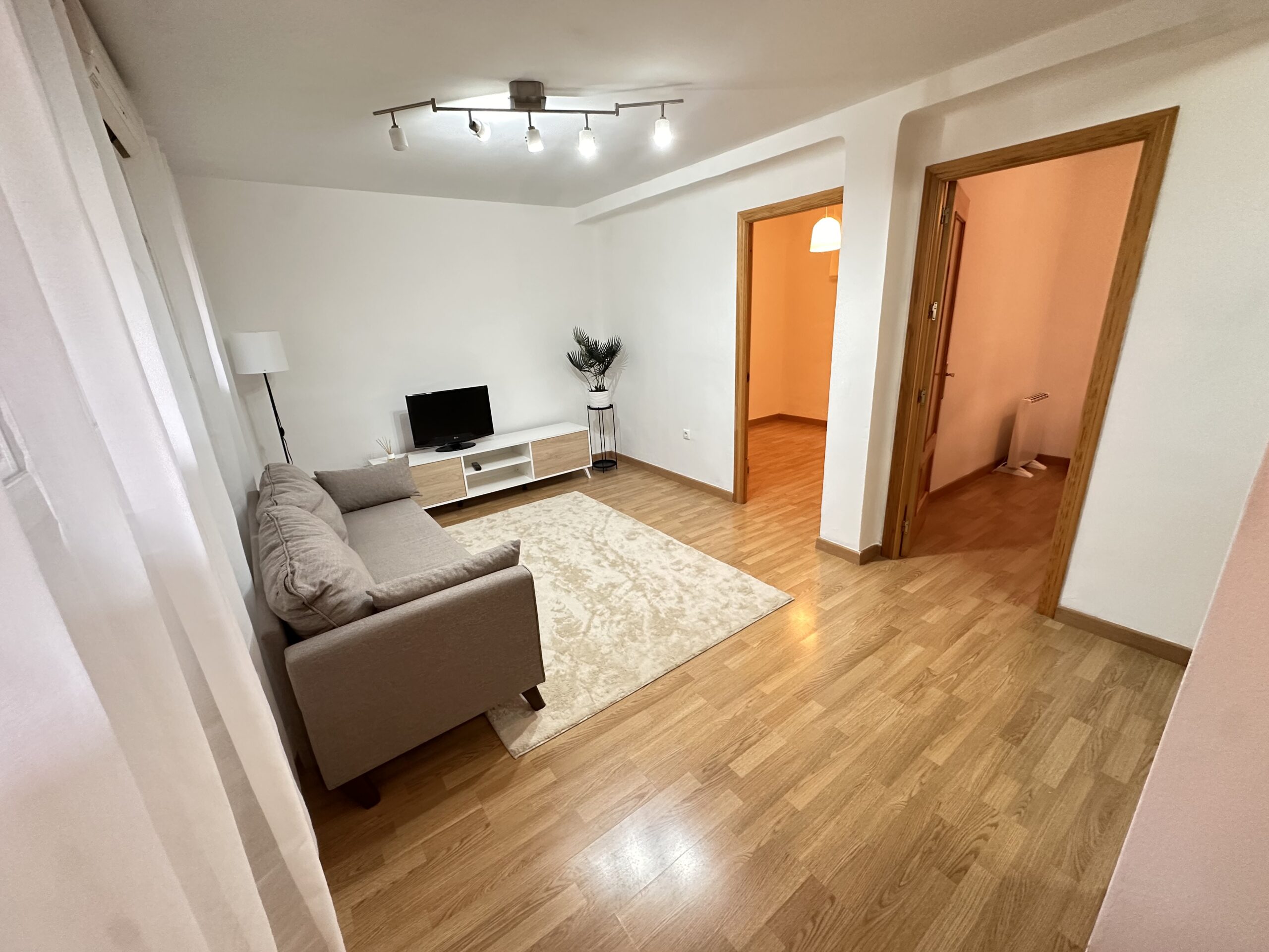 Apartamento de 60 metros útiles, salón exterior, cocina amueblada con electrodomésticos, 2 dormitorios con armarios empotrados, 1 baño completo con ducha.