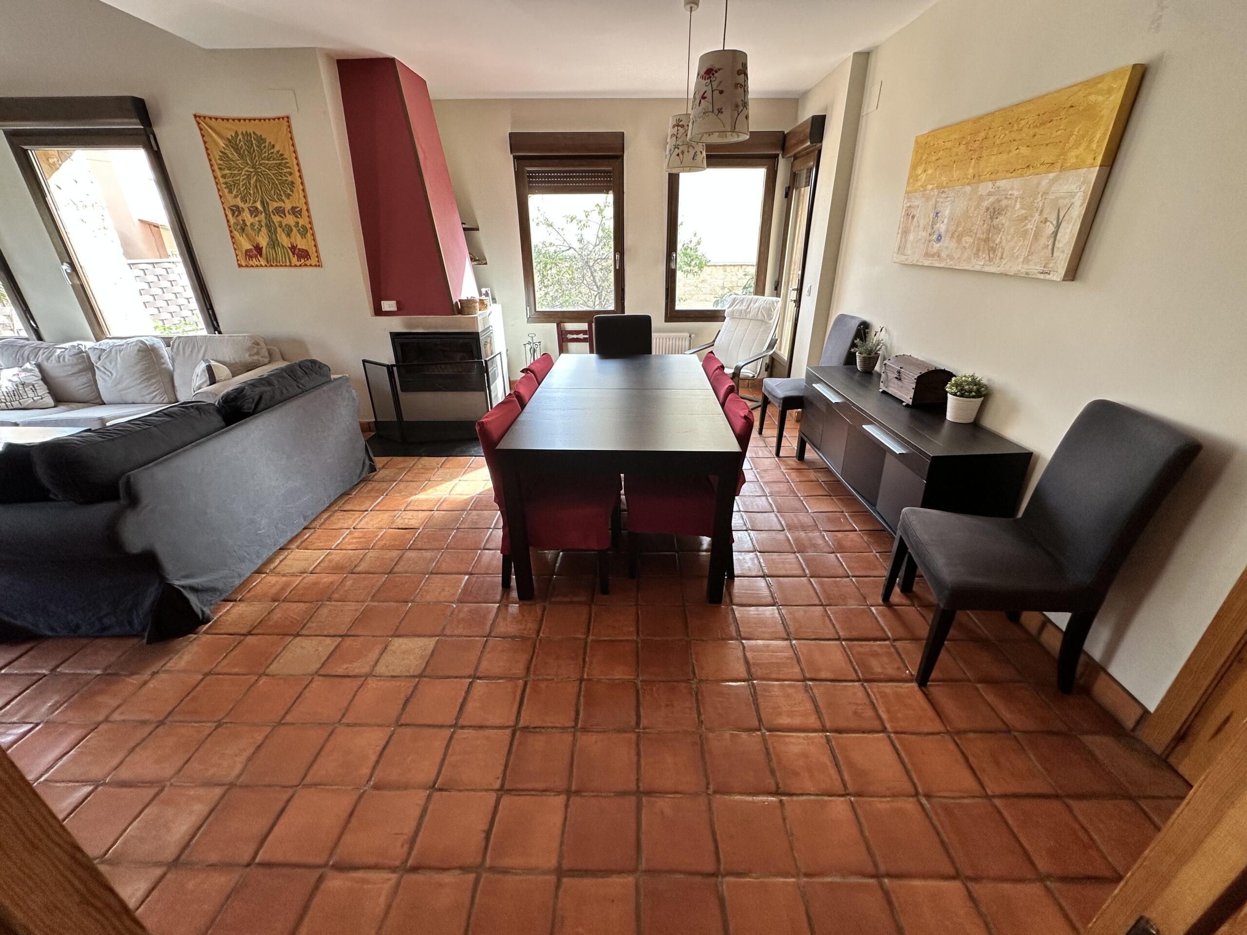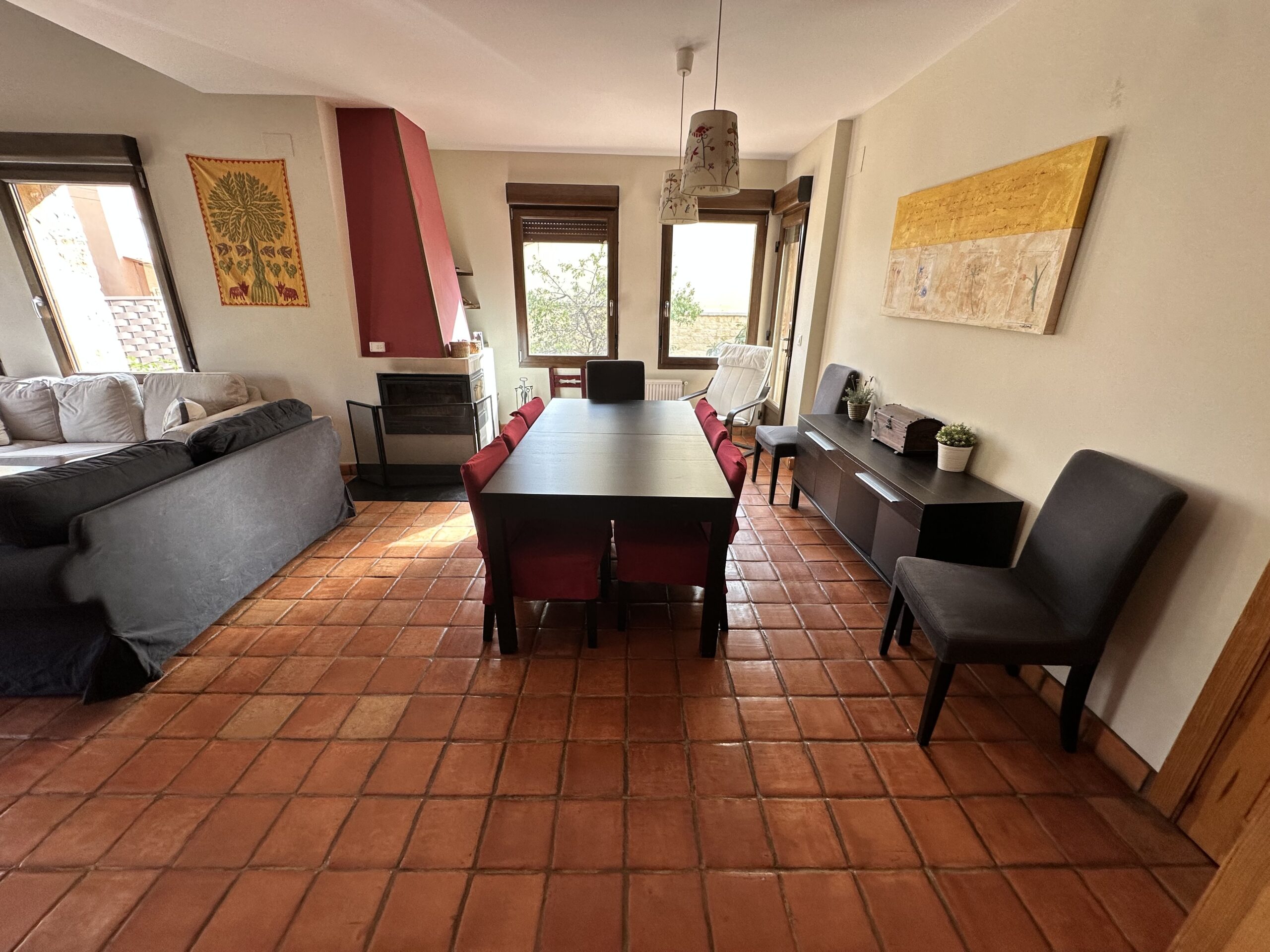 PLANTA BAJA: salón muy luminoso con chimenea, impresionante cocina amueblada y equipada con isla central, 2 dormitorios amplios, uno con armario empotrado y 2 baños con ducha. PLANTA PRIMERA: 3 dormitorios amplios con armarios empotrados