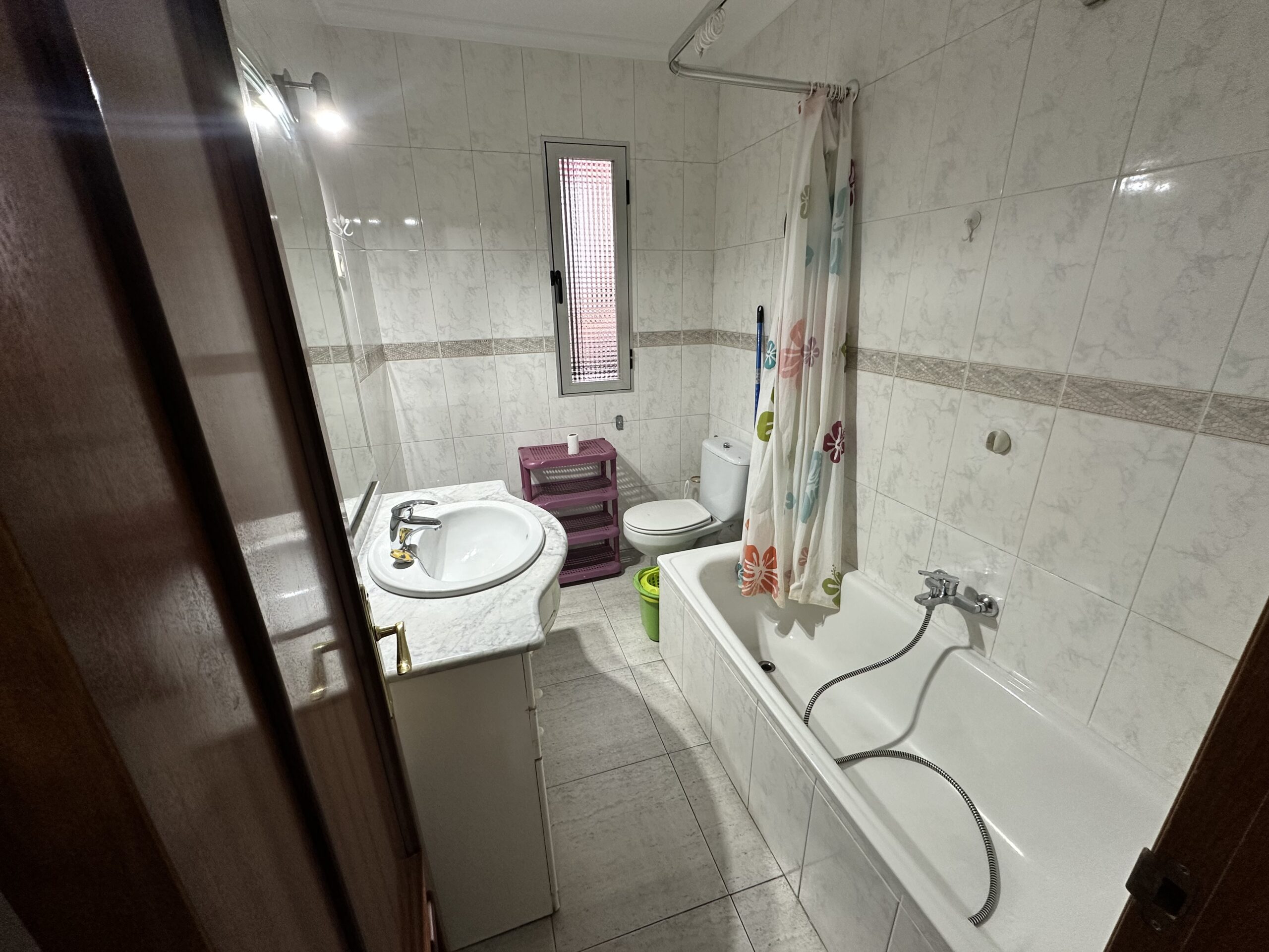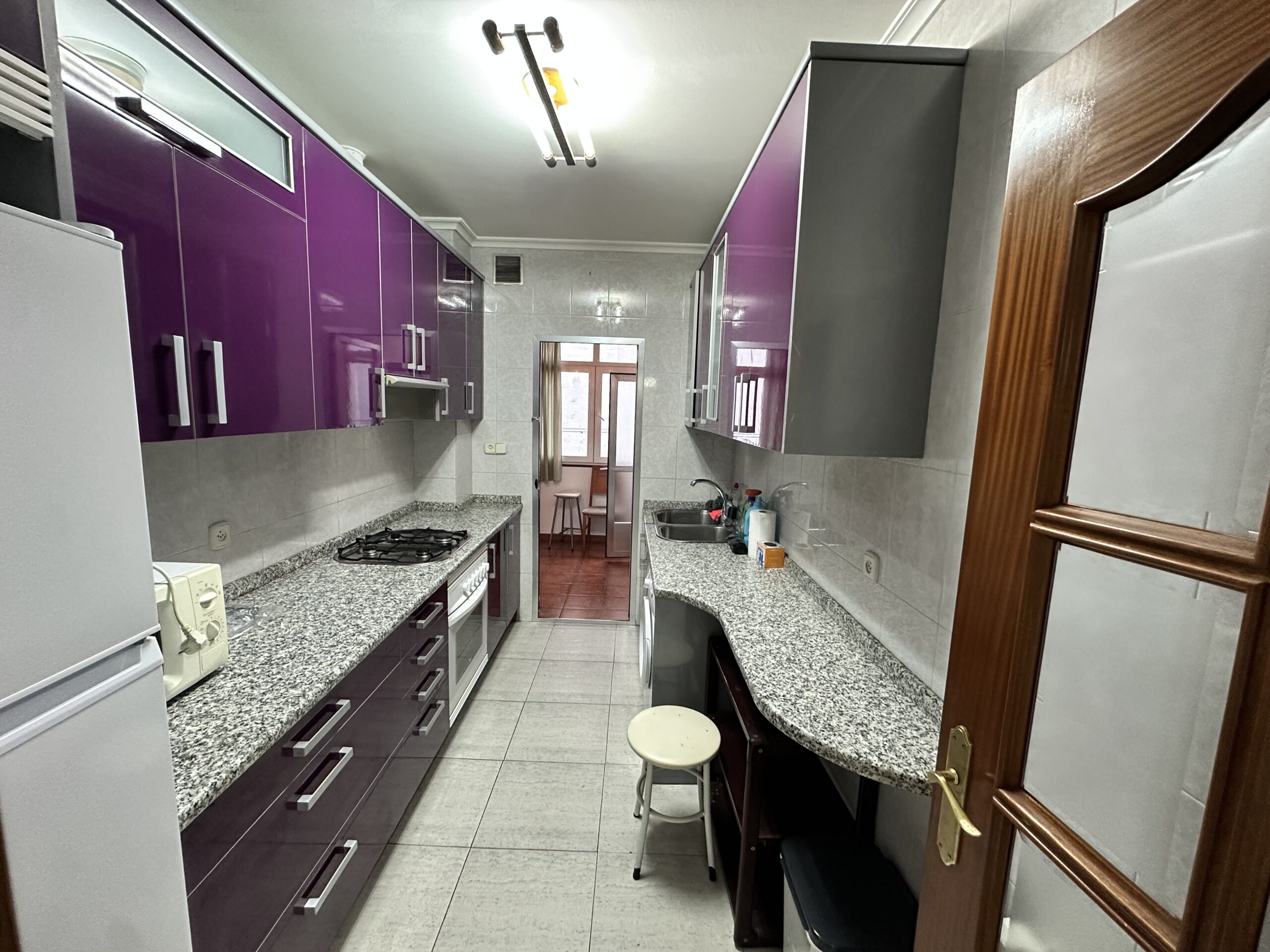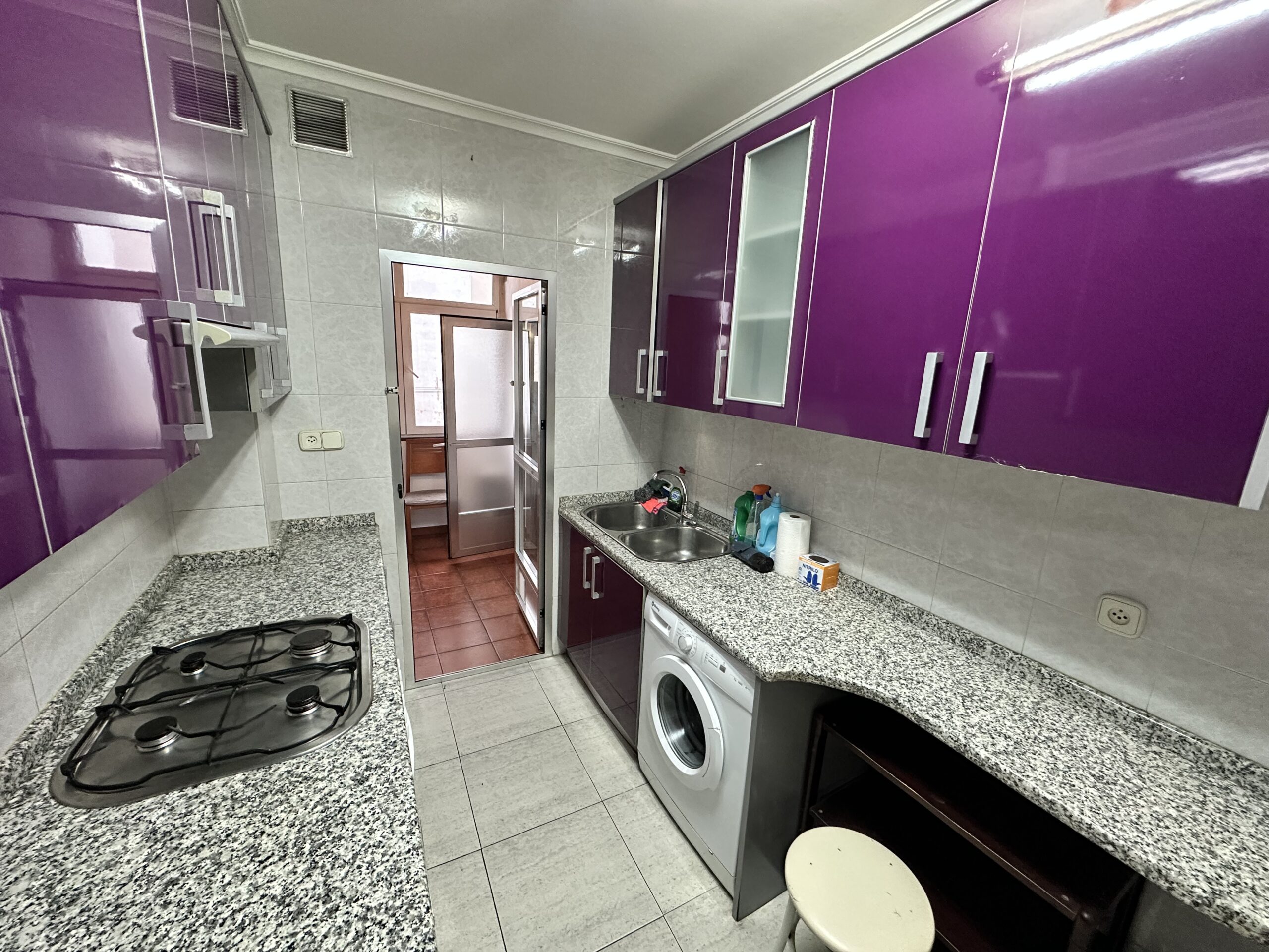 Piso de 110 metros útiles, amplio salón exterior, cocina amueblada con electrodomésticos, 3 dormitorios amplios, 1 baño completo con bañera.
