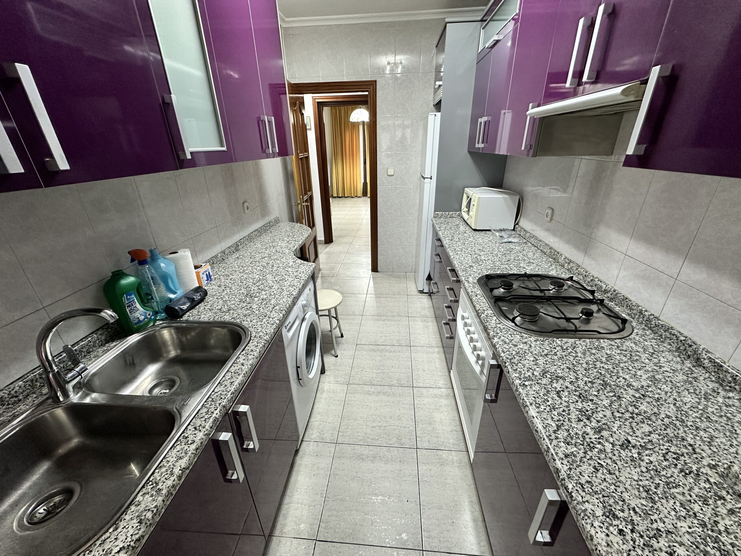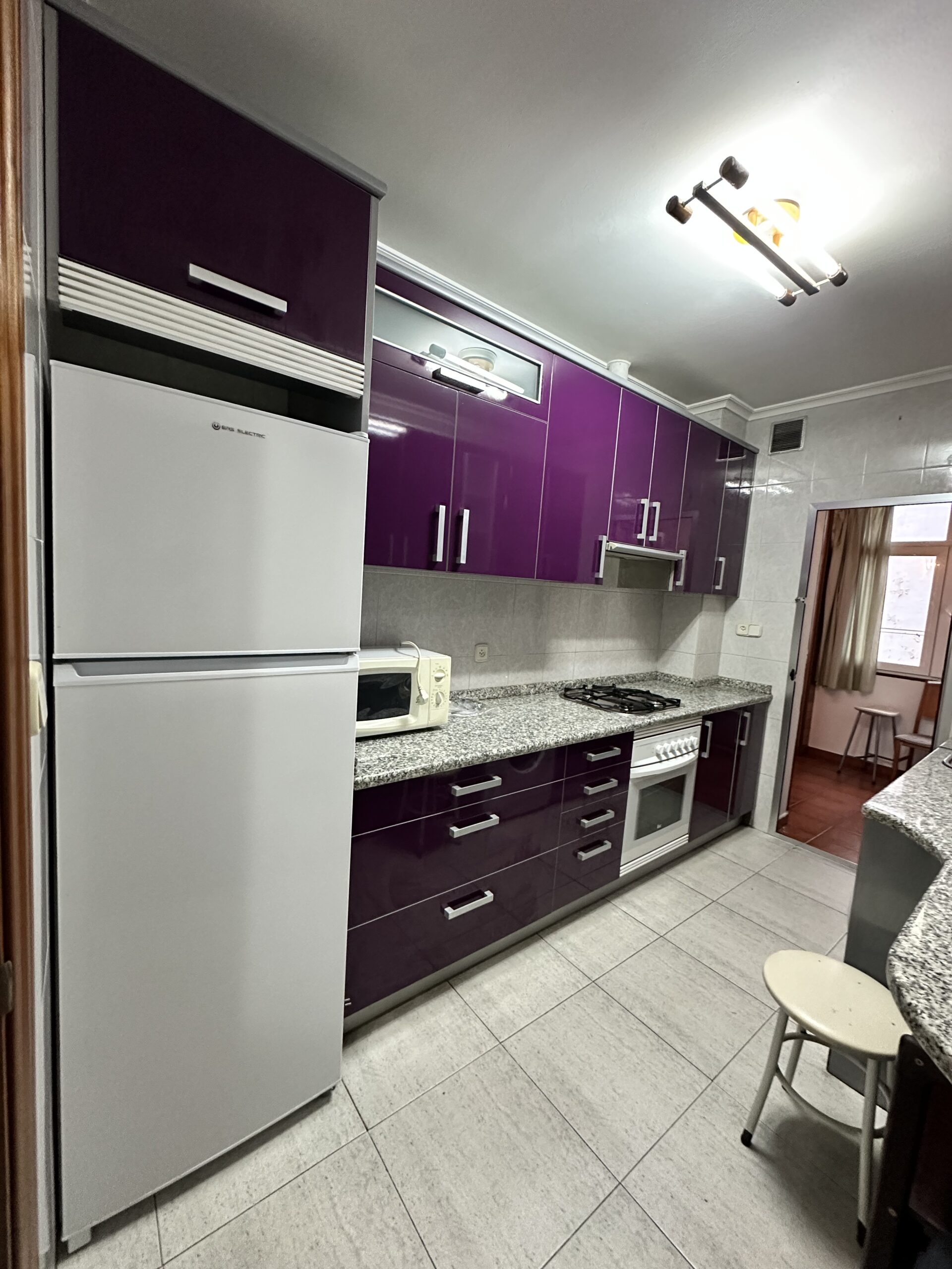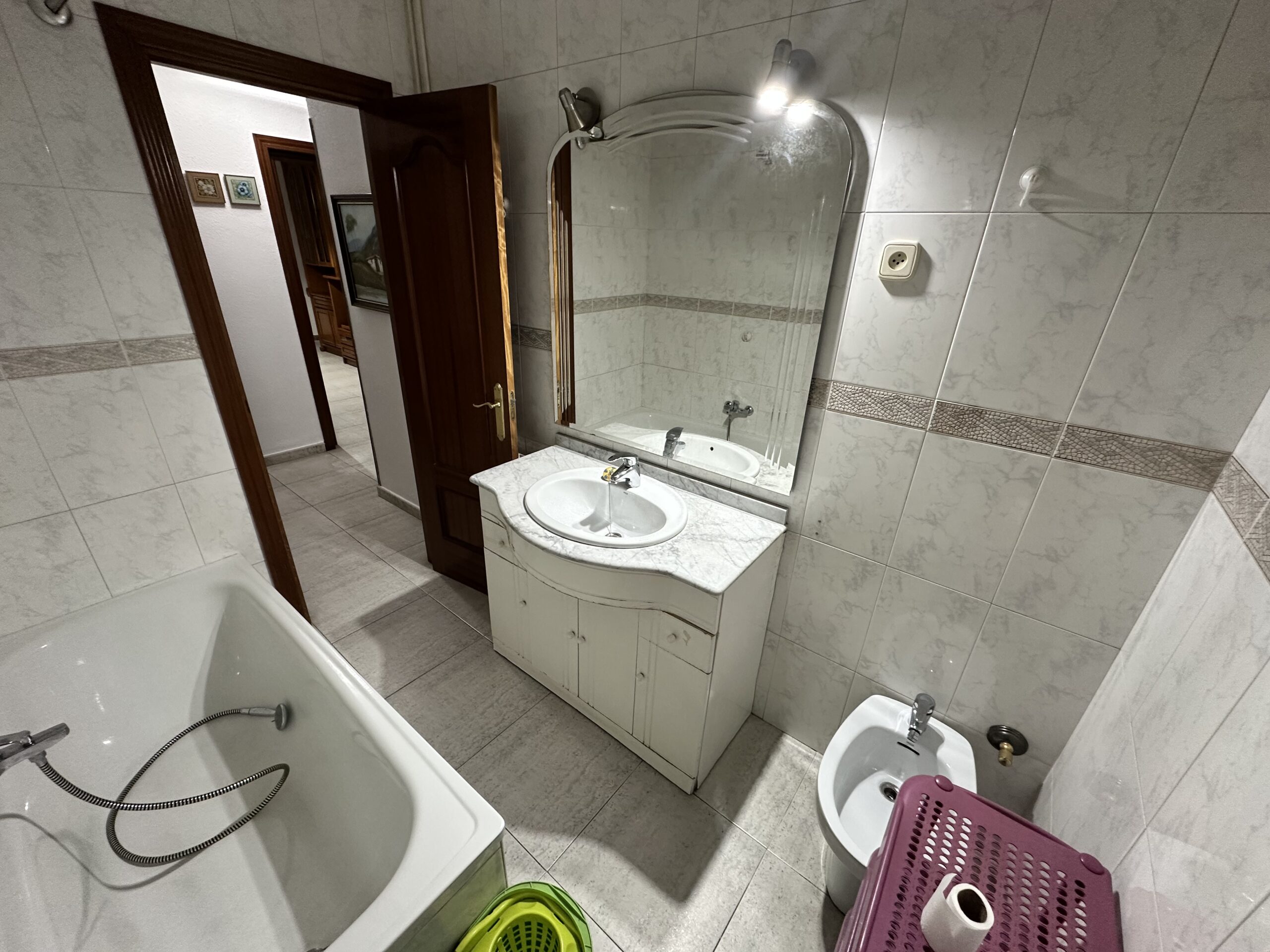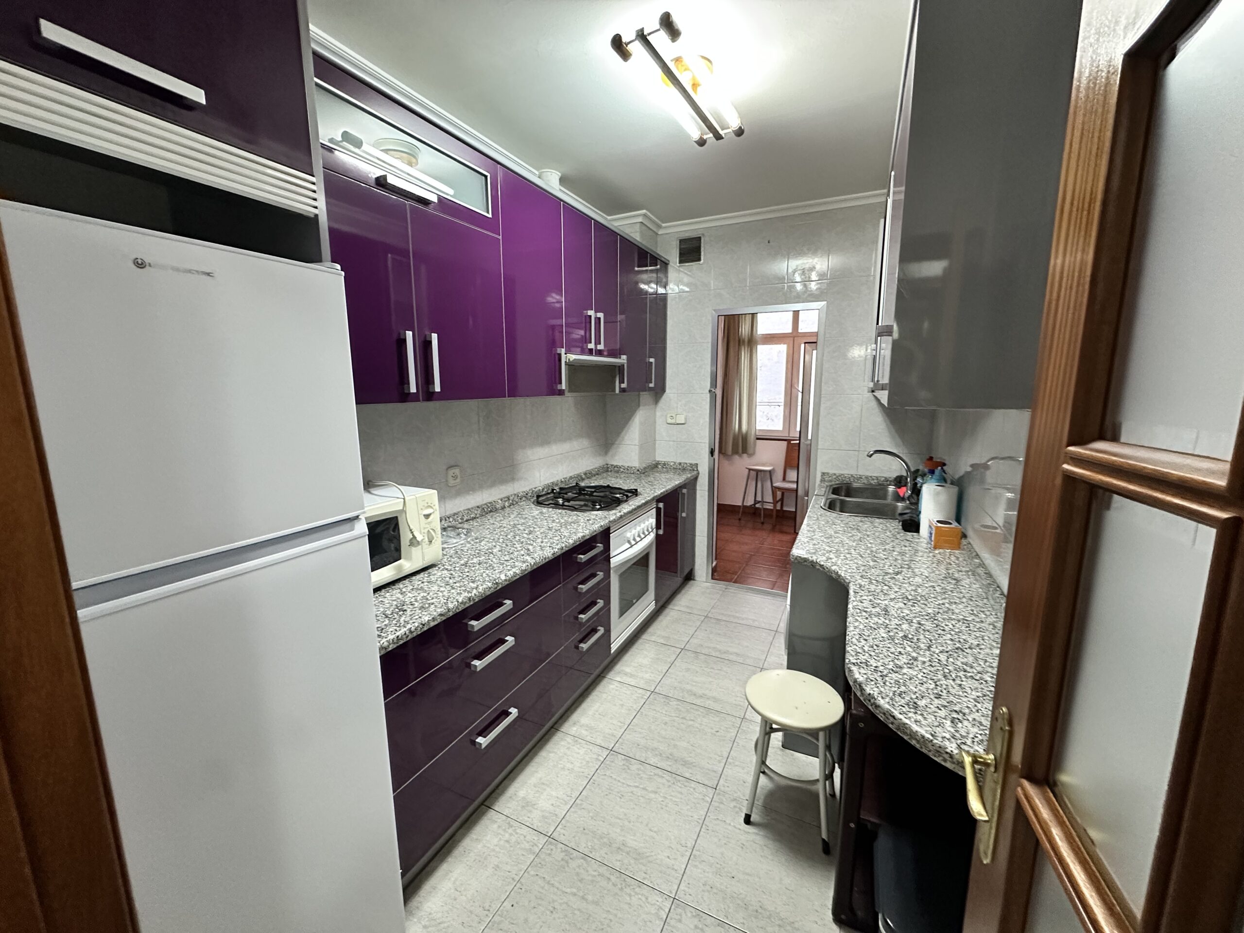 Piso de 110 metros útiles, amplio salón exterior, cocina amueblada con electrodomésticos, 3 dormitorios amplios, 1 baño completo con bañera.