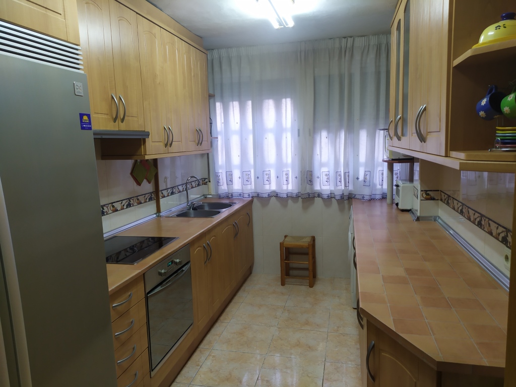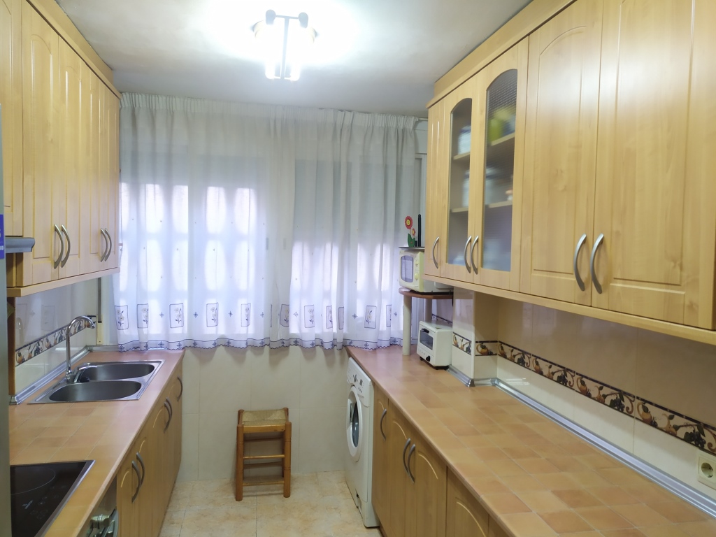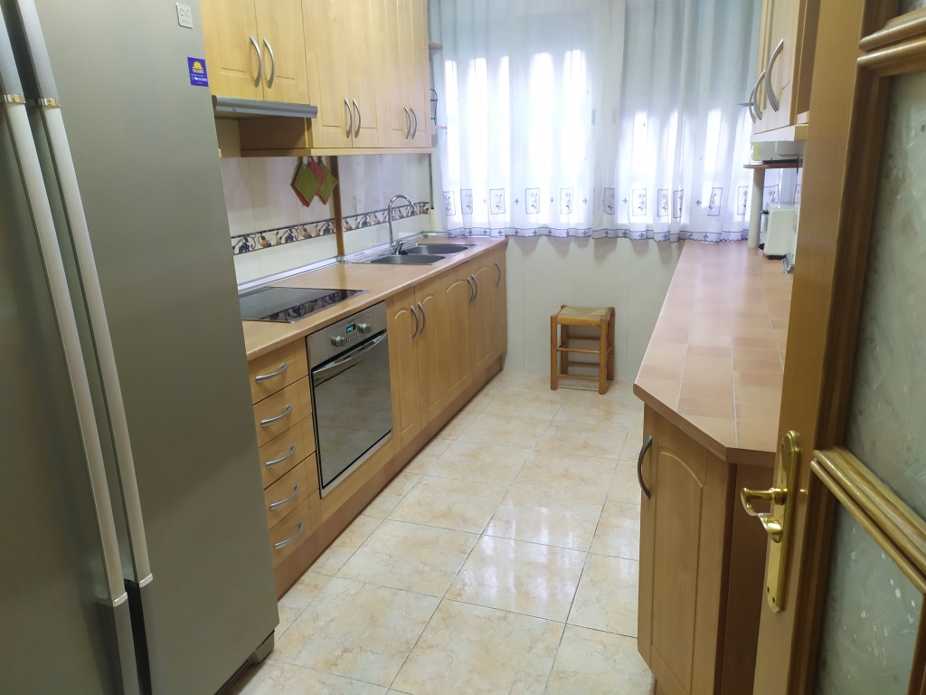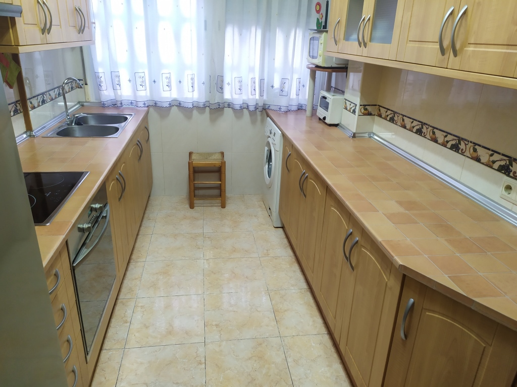 Piso de 80 metros útiles, amplio salón exterior, cocina amueblada con electrodomésticos, 3 dormitorios, 1 baño con bañera.