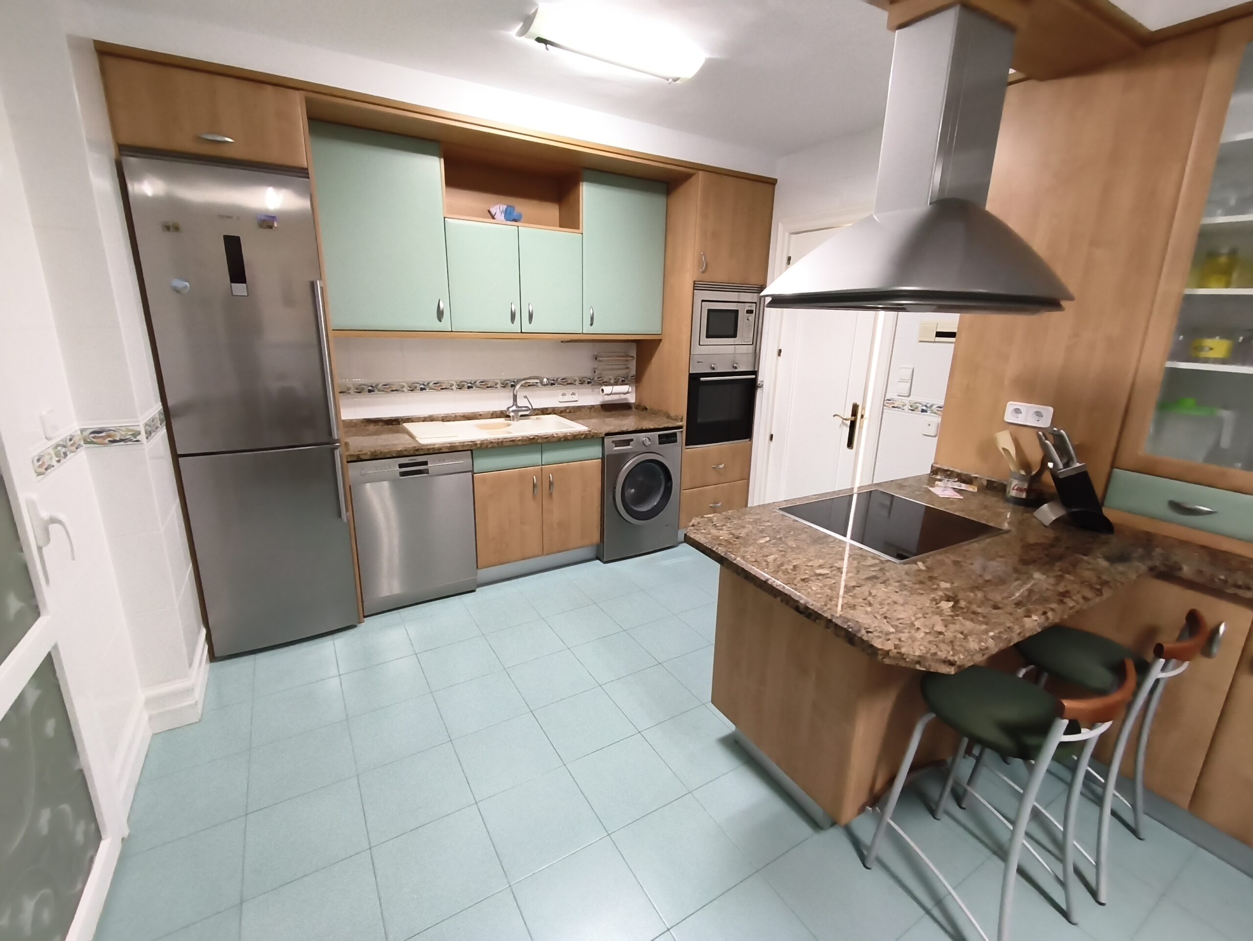 Piso de 90 metros útiles, amplio salón exterior, cocina amueblada con electrodomésticos, 3 dormitorios con armarios empotrados, 2 baños uno bañera y otro con ducha.