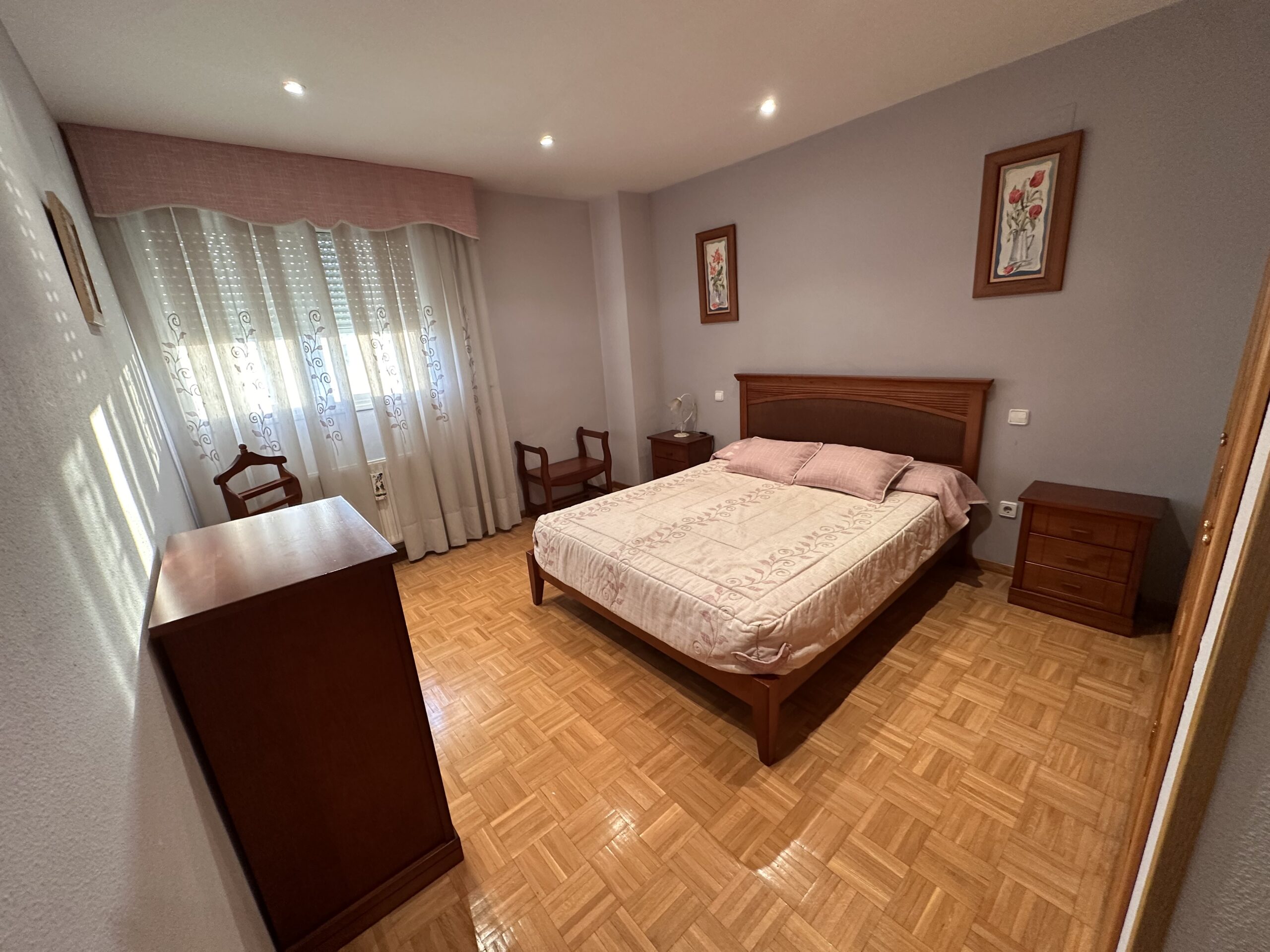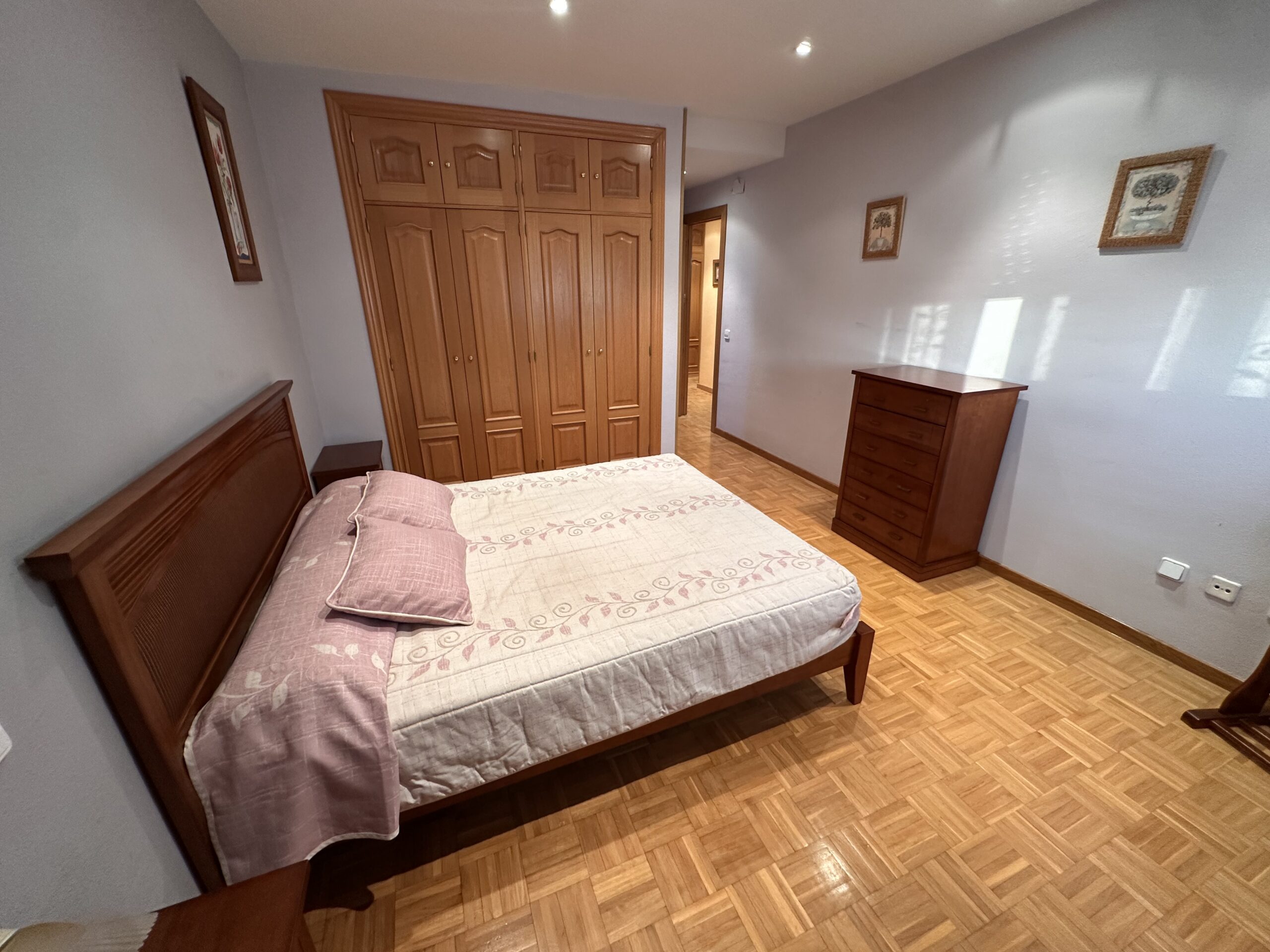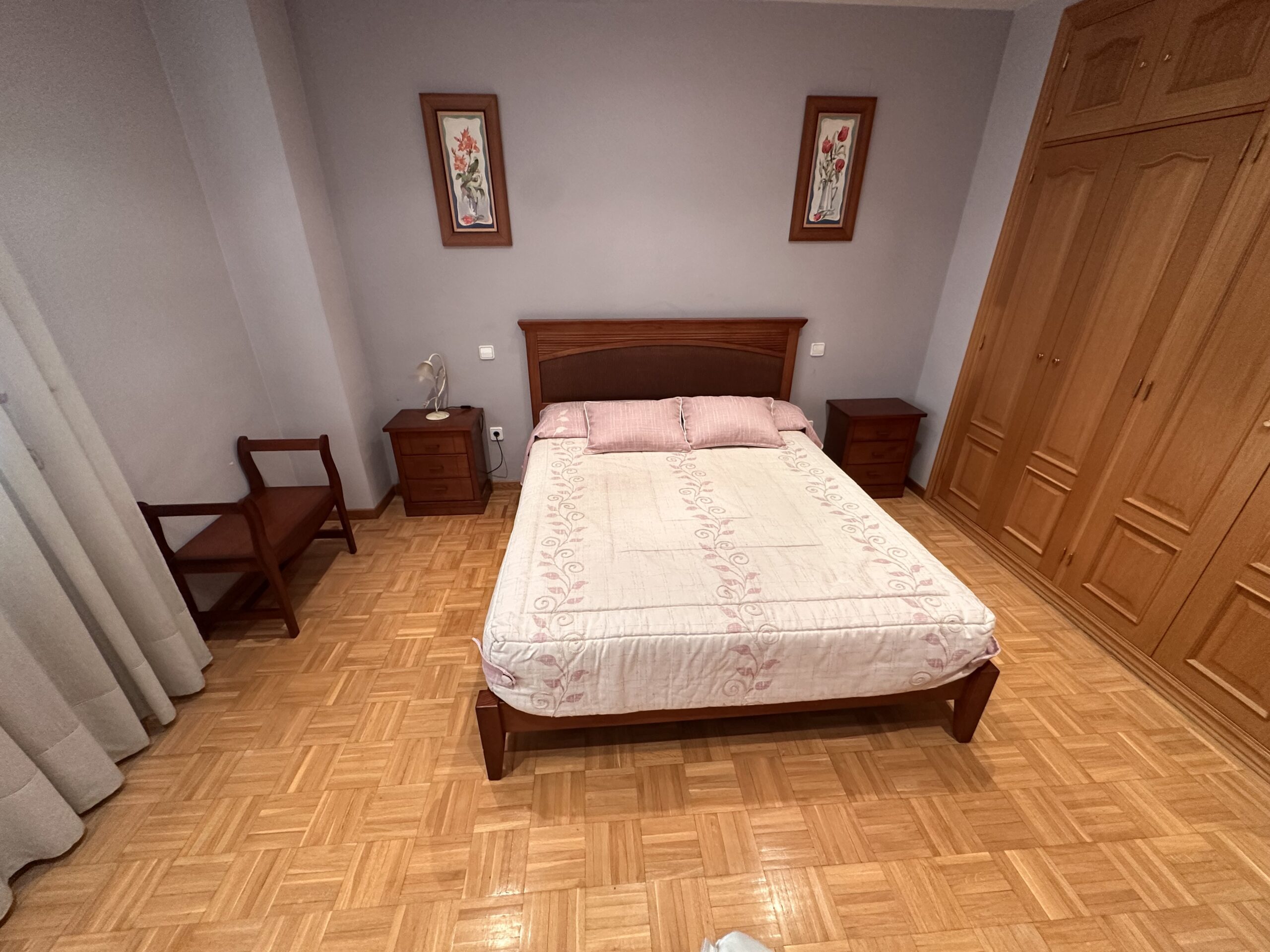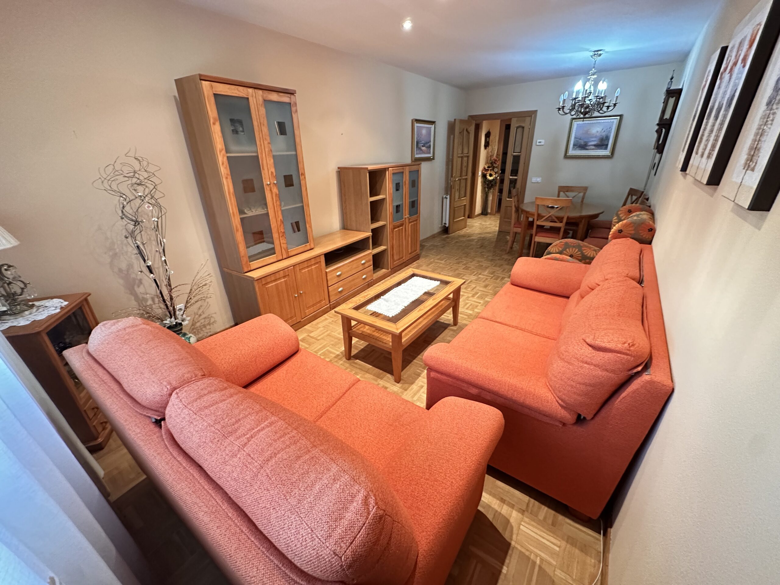 Piso de 90 metros útiles, amplio salón exterior, cocina amueblada con electrodomésticos, 3 dormitorios dos de ellos con armario empotrado, 2 baños uno completo con bañera y otro con ducha.