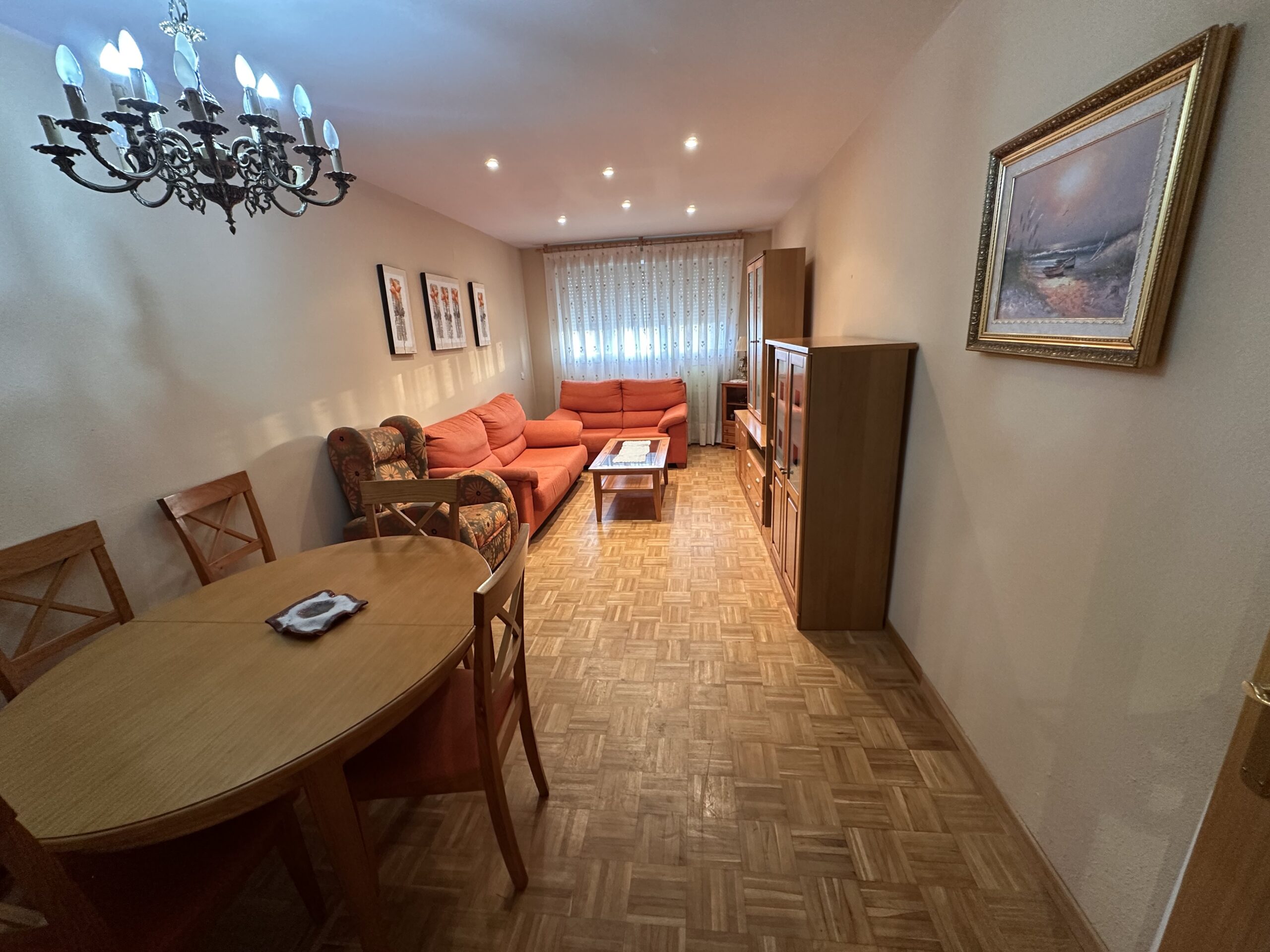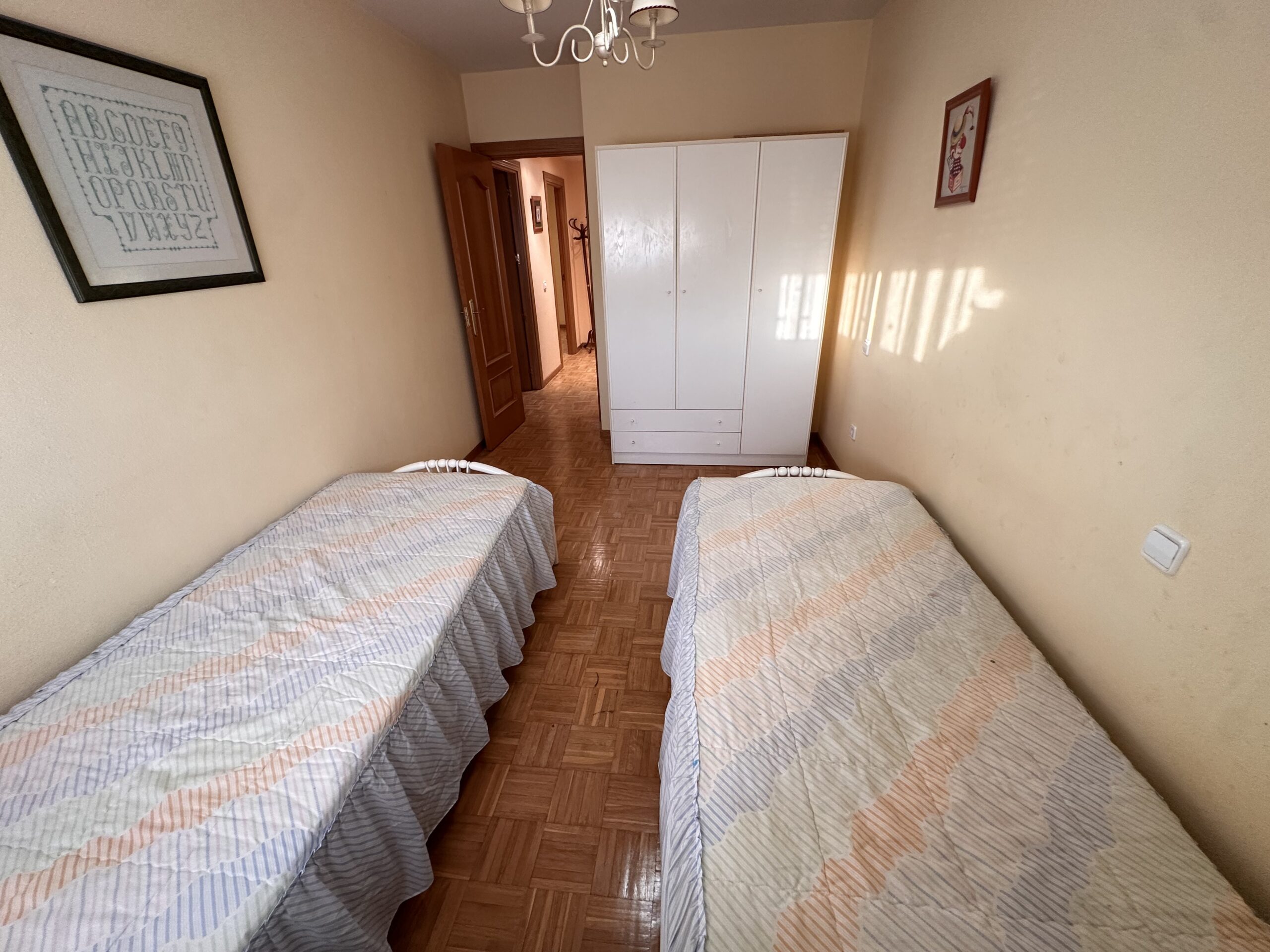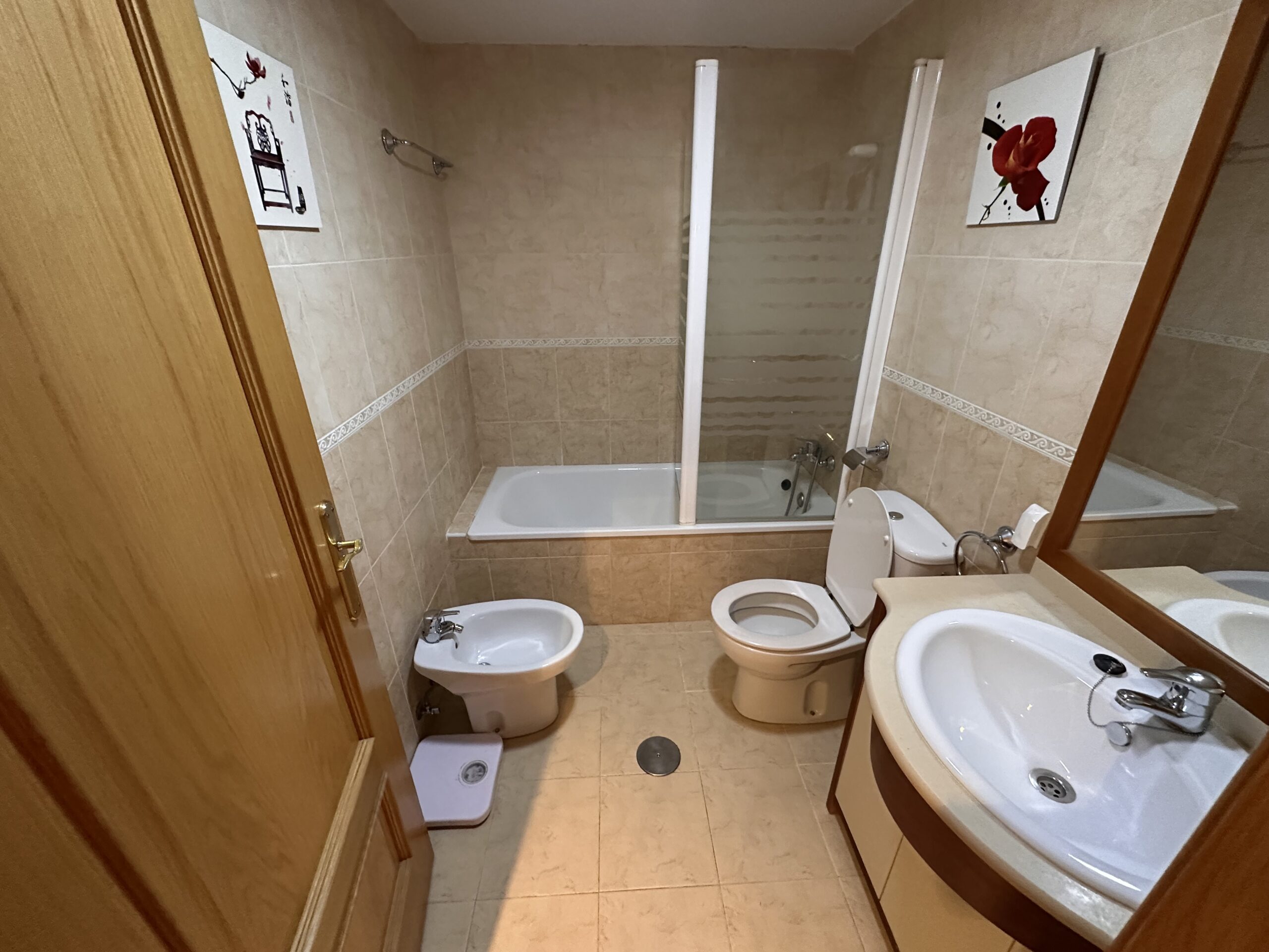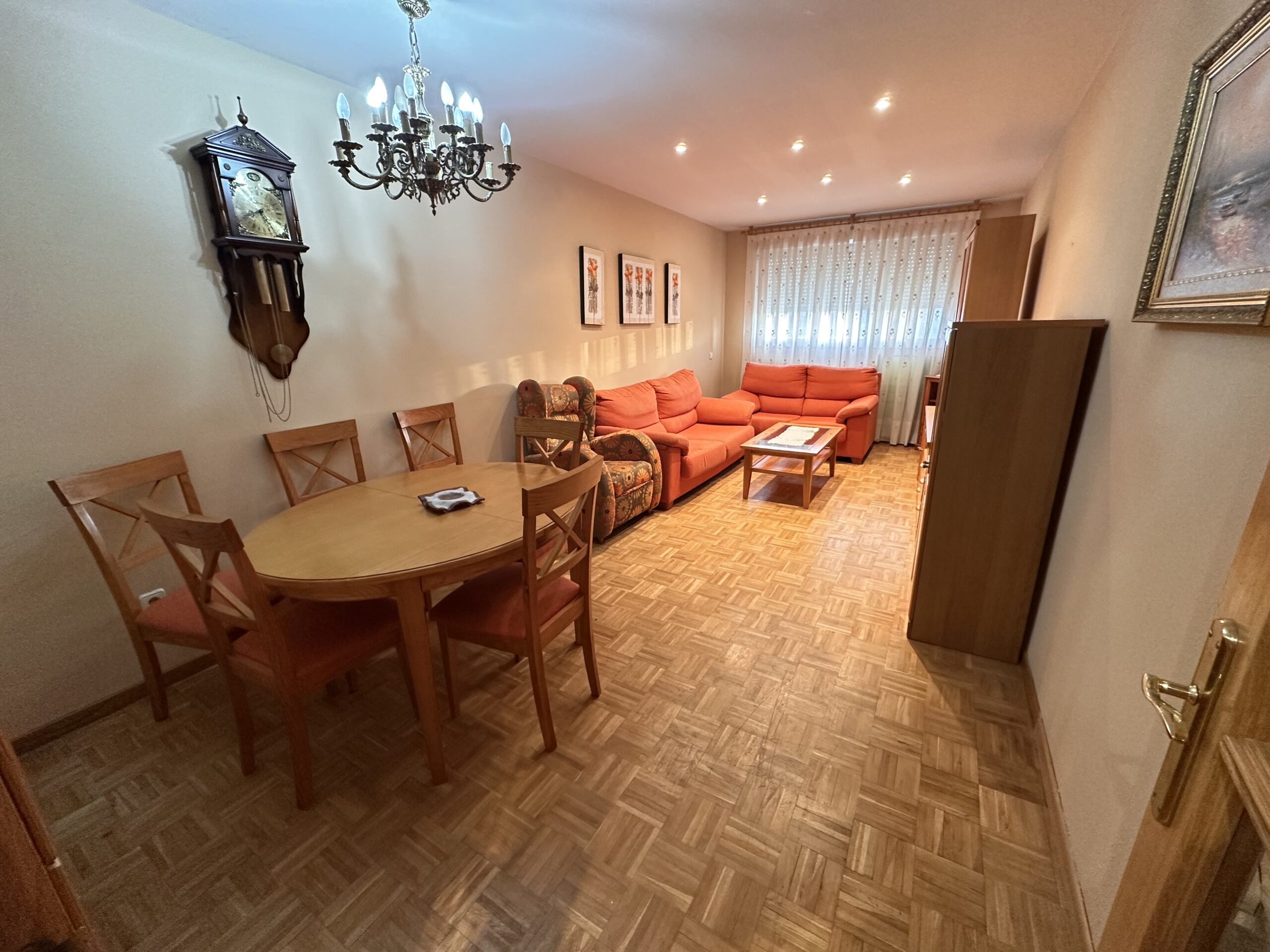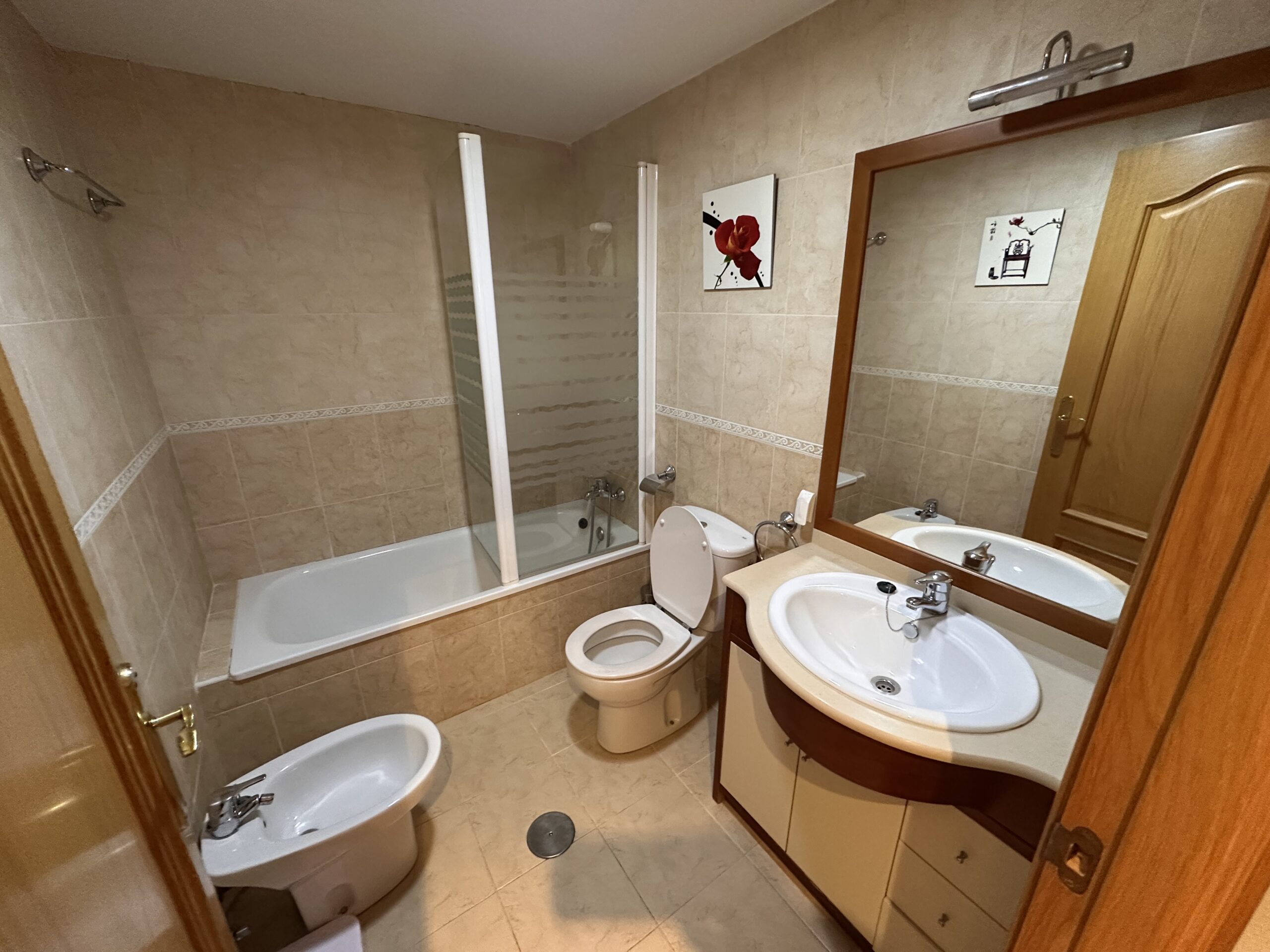 Piso de 90 metros útiles, amplio salón exterior, cocina amueblada con electrodomésticos, 3 dormitorios dos de ellos con armario empotrado, 2 baños uno completo con bañera y otro con ducha.
