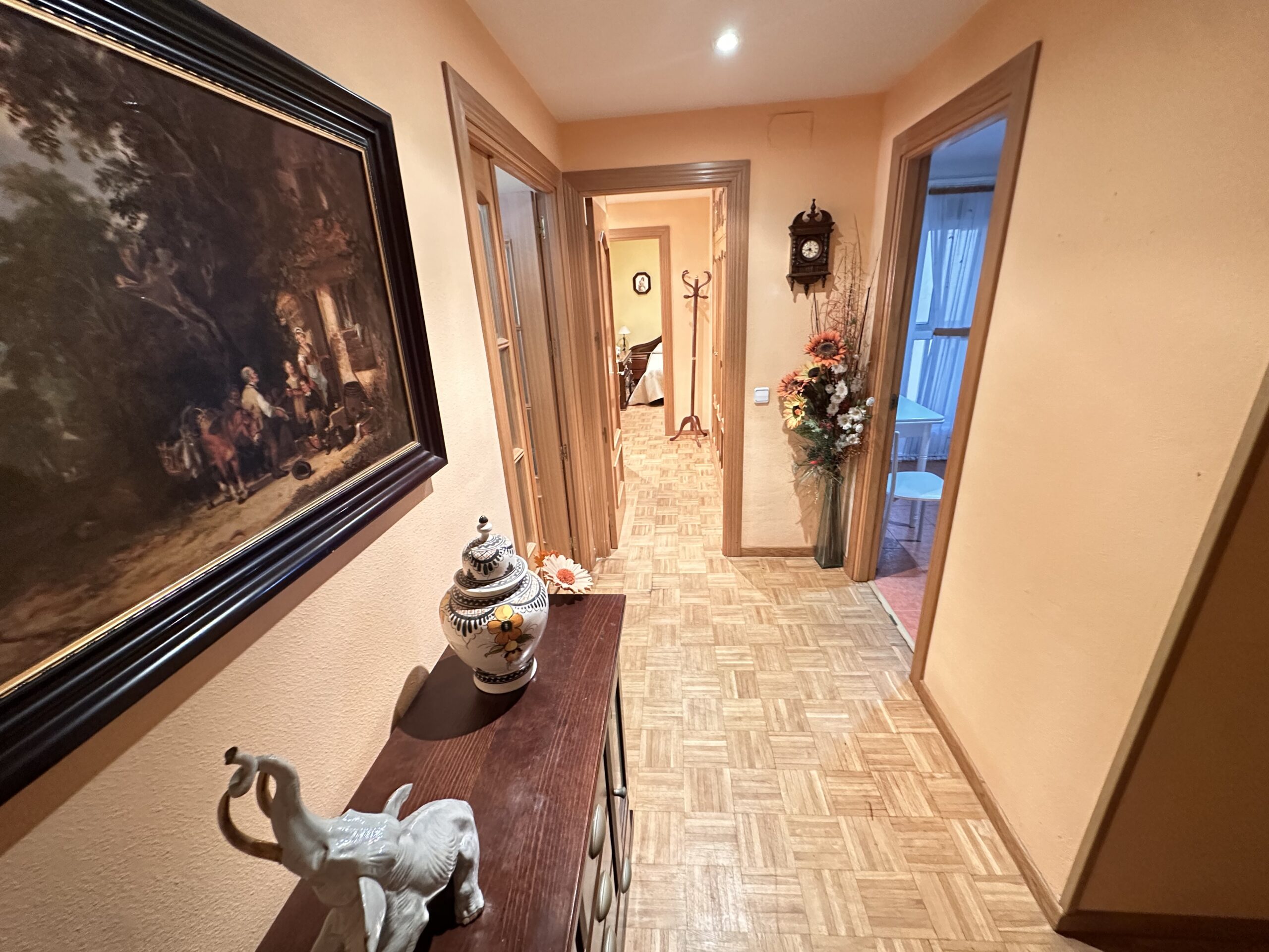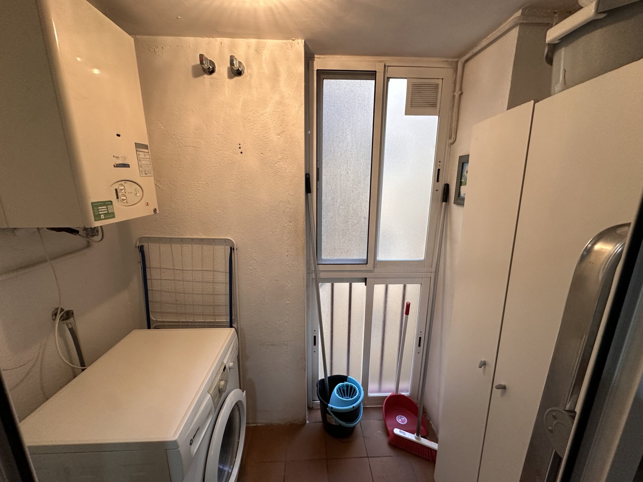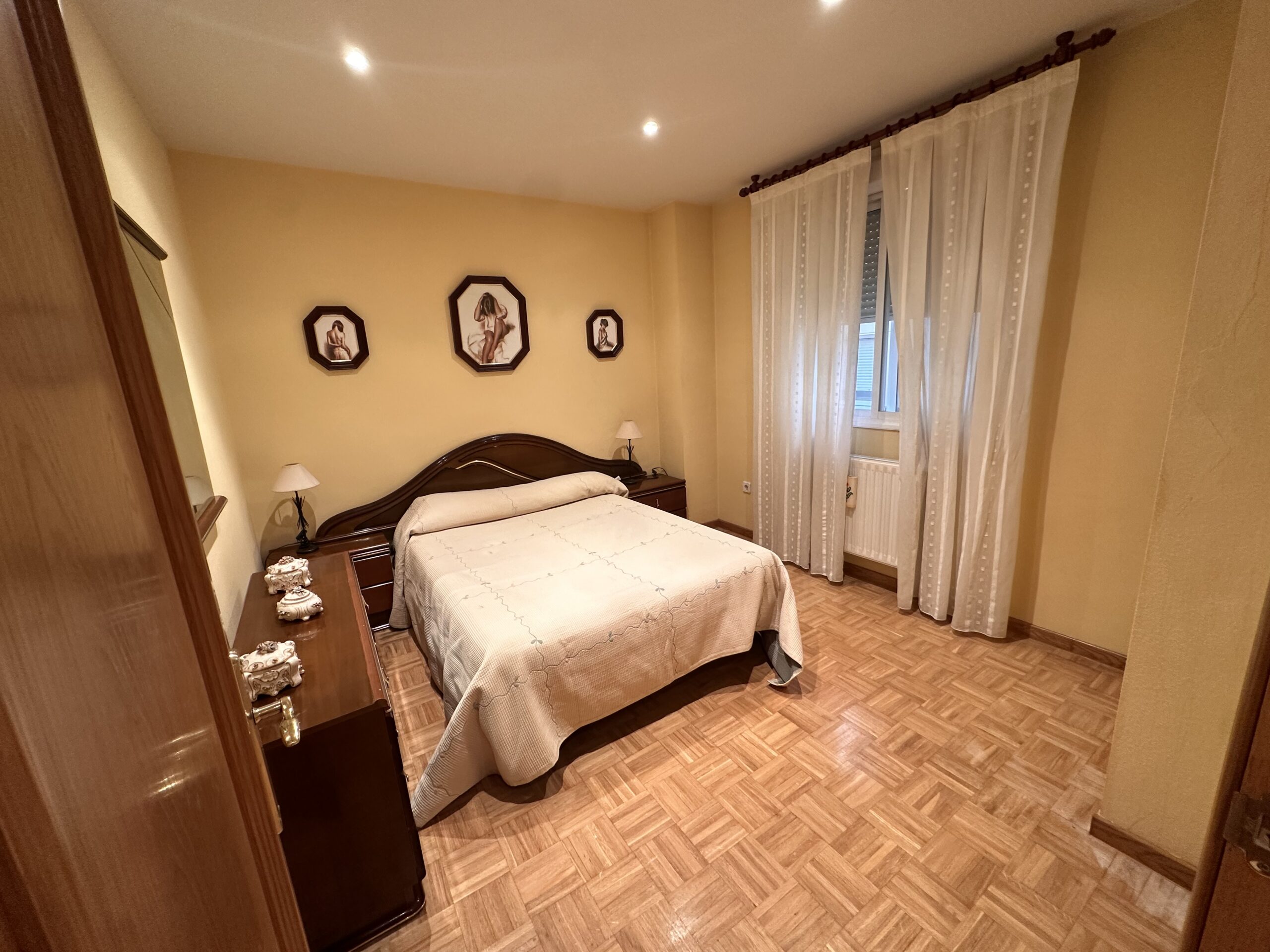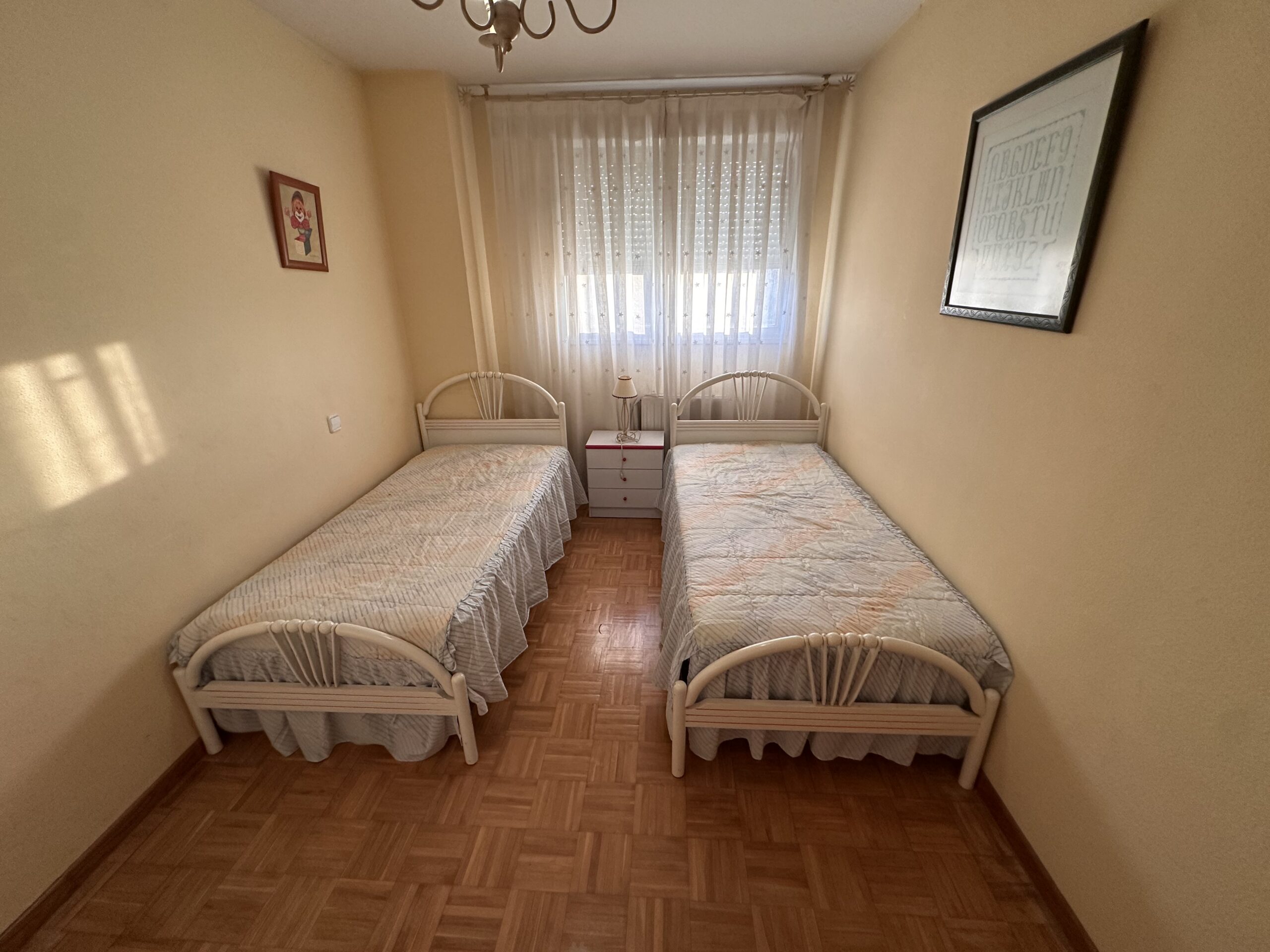 Piso de 90 metros útiles, amplio salón exterior, cocina amueblada con electrodomésticos, 3 dormitorios dos de ellos con armario empotrado, 2 baños uno completo con bañera y otro con ducha.