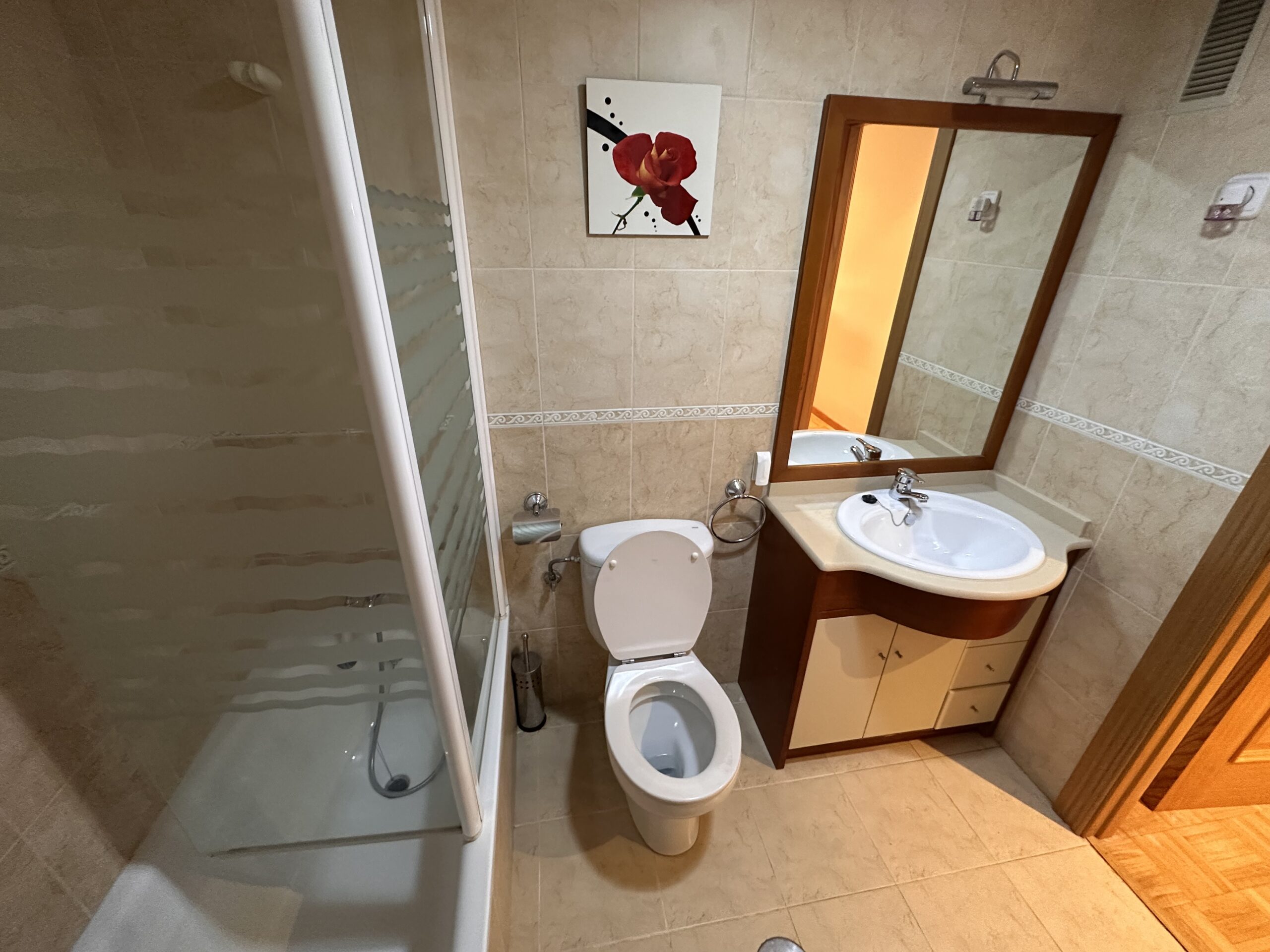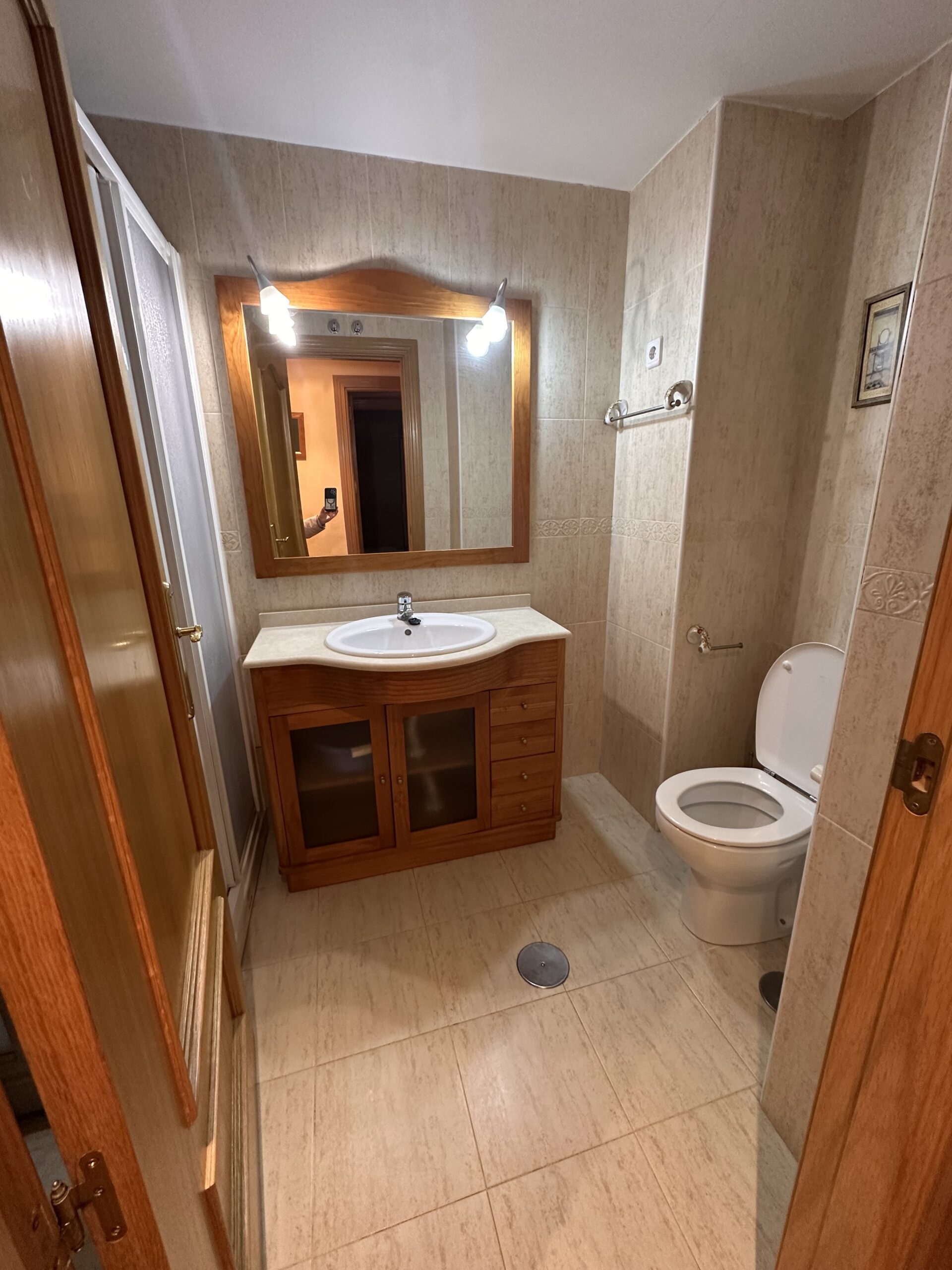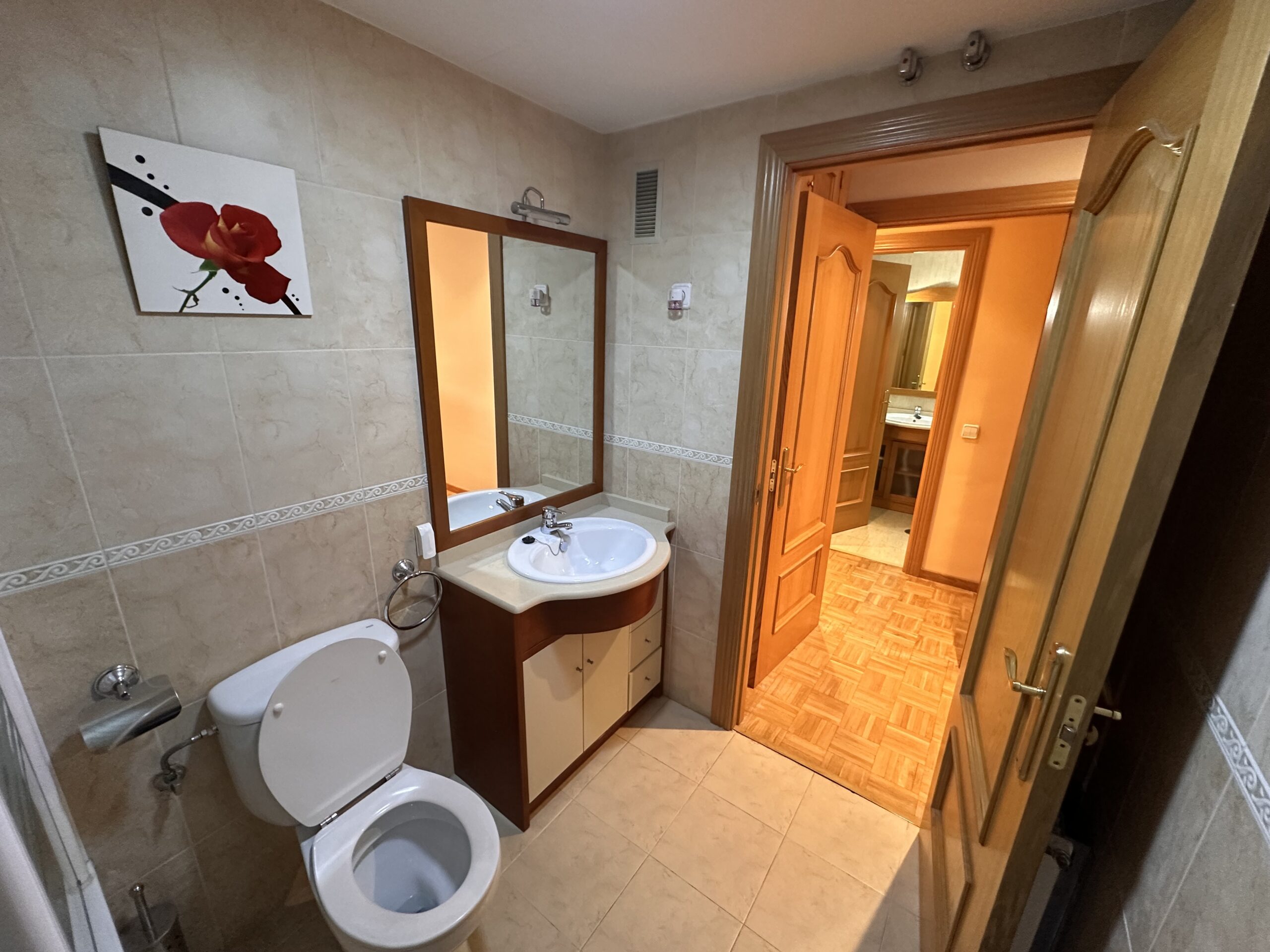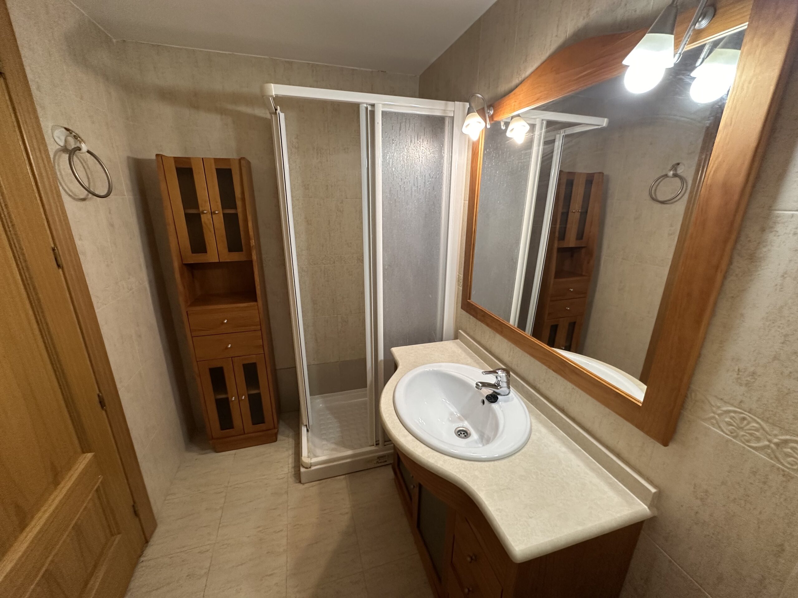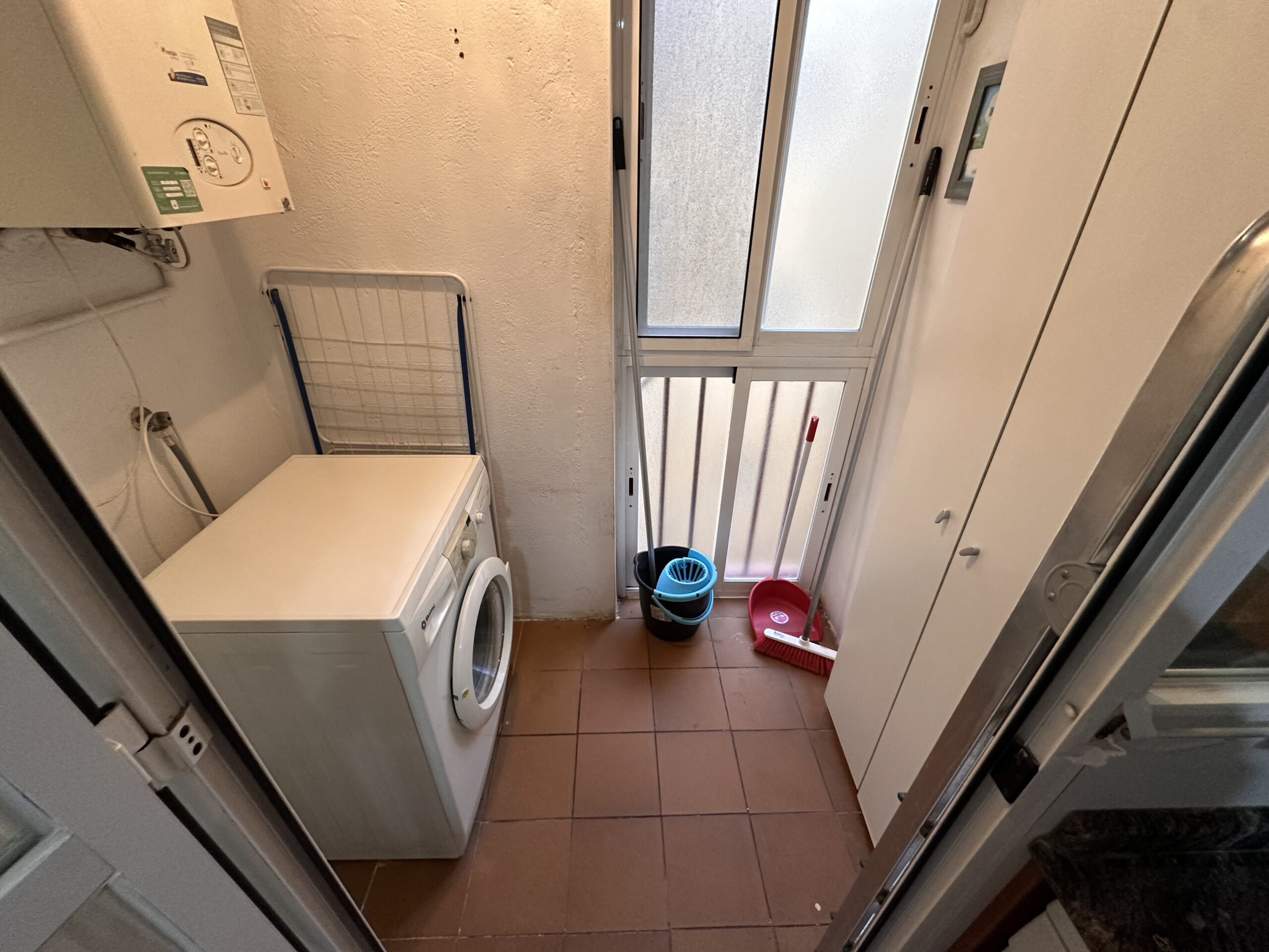 Piso de 90 metros útiles, amplio salón exterior, cocina amueblada con electrodomésticos, 3 dormitorios dos de ellos con armario empotrado, 2 baños uno completo con bañera y otro con ducha.